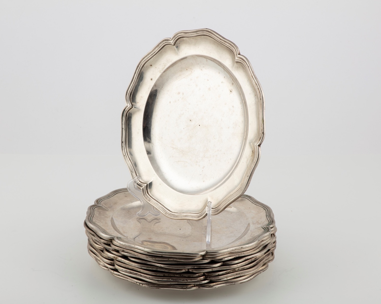 di forma circolare con bordo sagomato, monogrammati al retro.