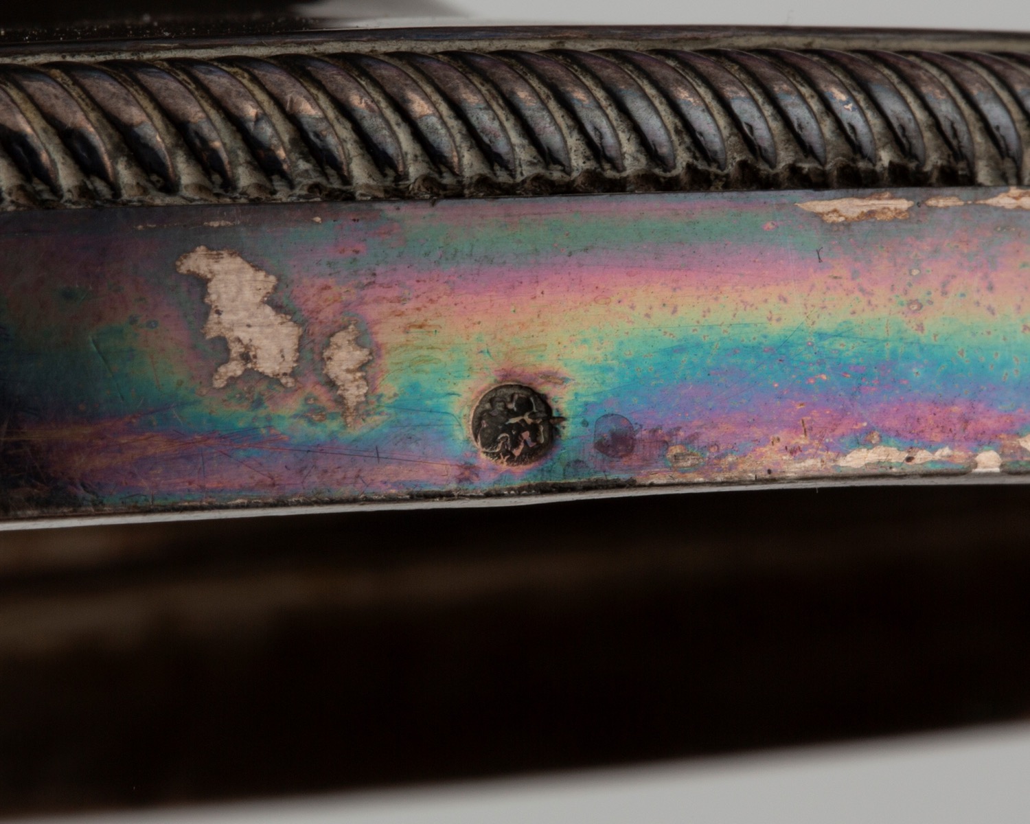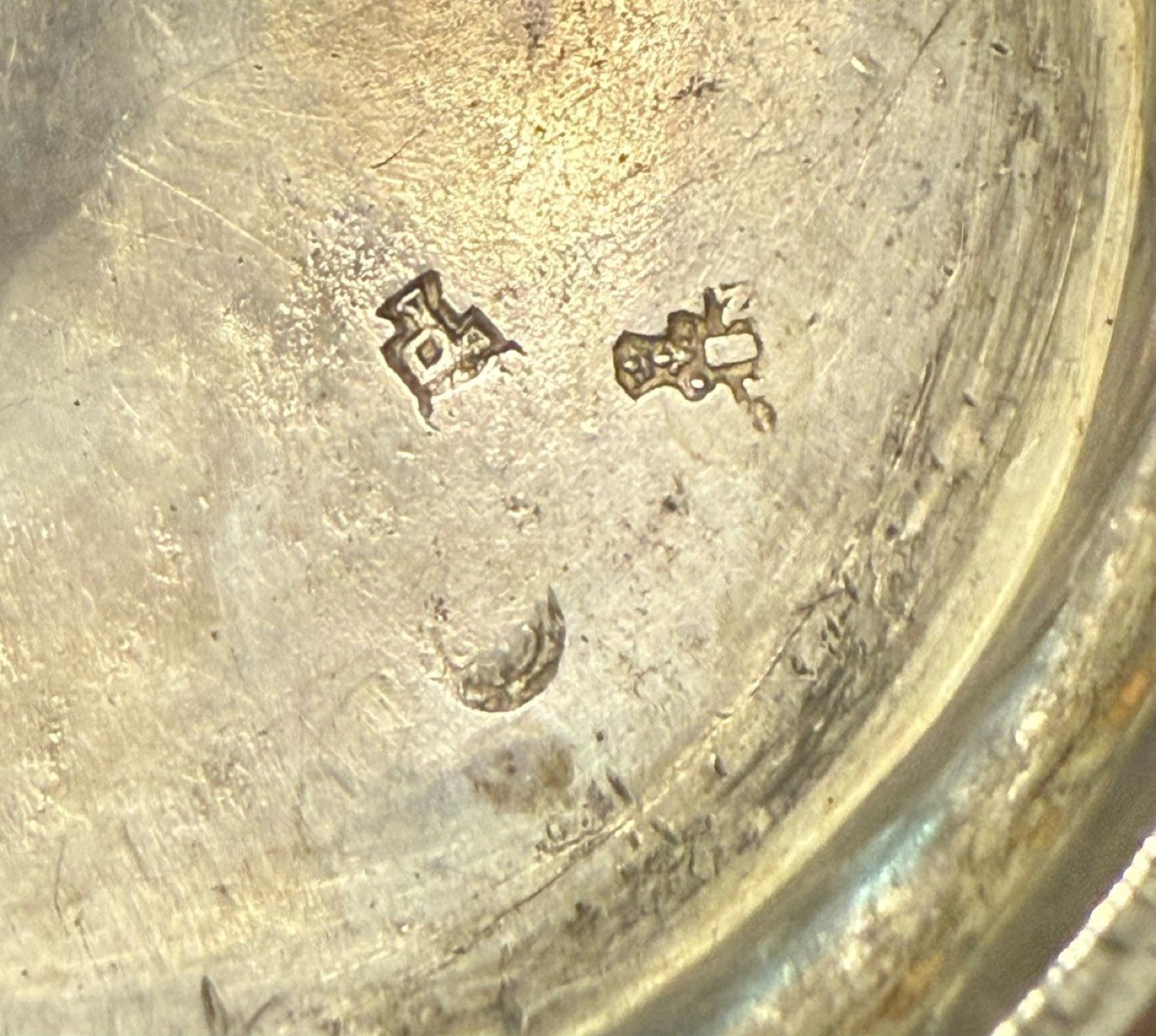Punzoni della Torretta per l'anno 1801, marchi di ricontrollo di Genova con delfino, alla base marchi francesi (?) consunti di difficile lettura,