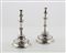 fusi e finemente sbalzati, base circolare con fascia decorata a decori floreali, fusto a balaustro con decorazioni fogliacee a rilievo.
