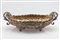 finemente cesellato e sbalzato a frutta e fiori, piedini floreali, a due anse decorate con foglie di acanto e finale a ricciolo, interno in vermeil.