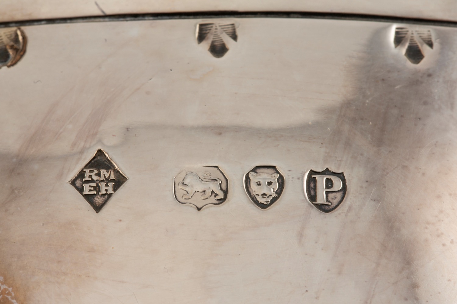 biansato e baccellato, sbalzato con gigli, volute e centrato da riserva.