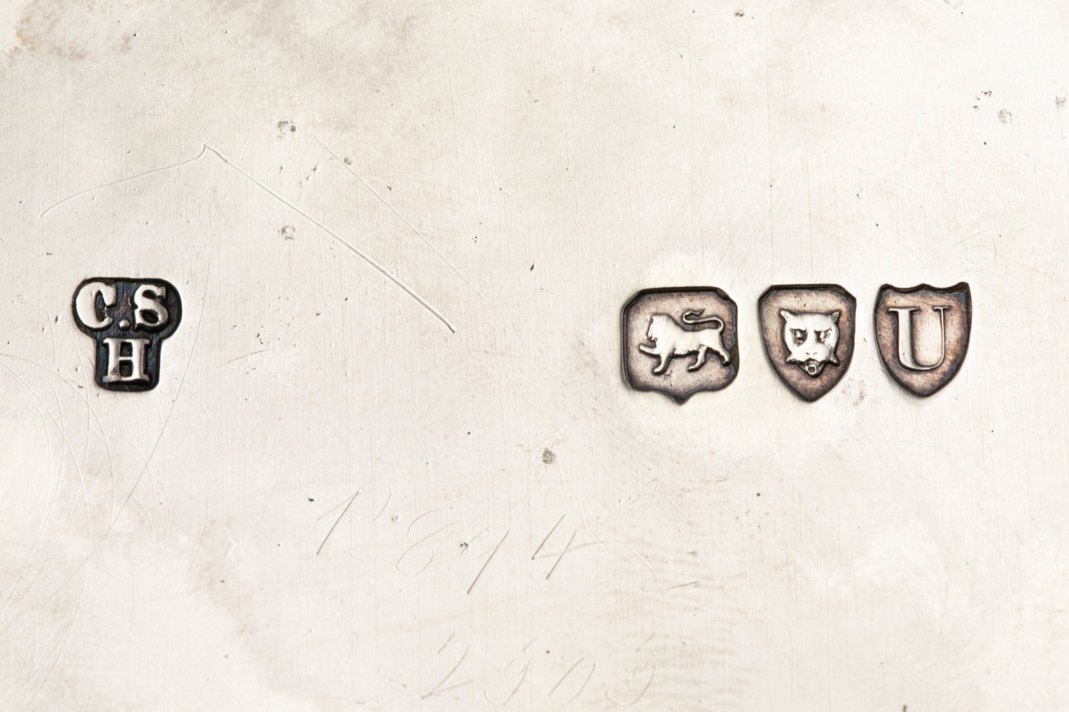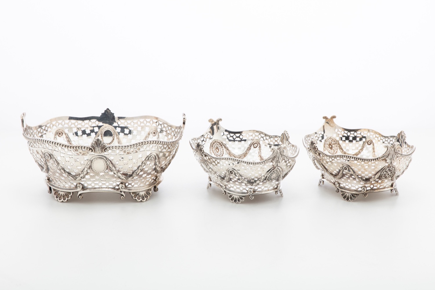 finemente traforati, poggianti su piedini a conchiglia, sbalzati sul corpo con festoni e con bordo perlinato.