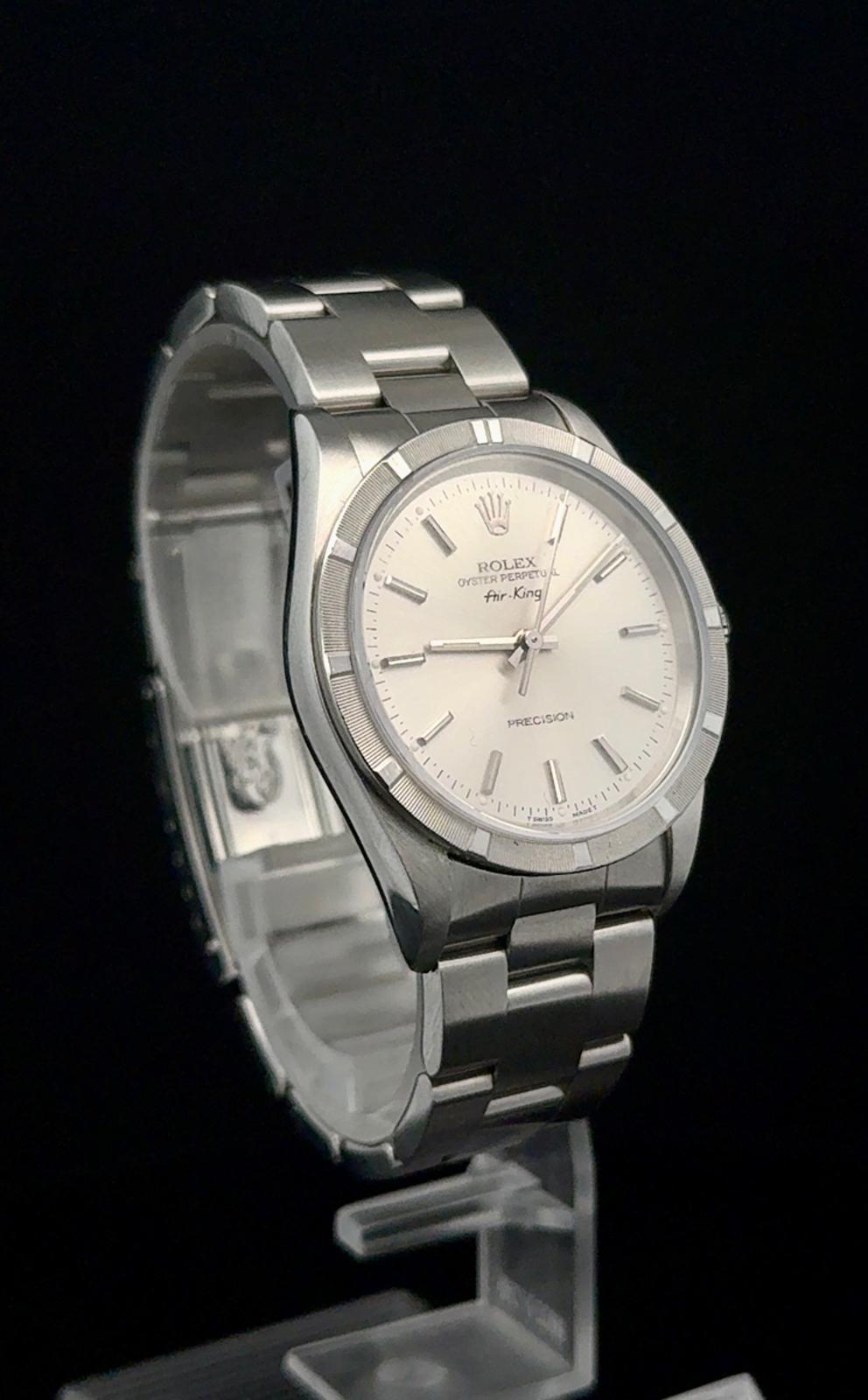Marca Rolex Modello (Orologio) Air King Numero di referenza 14010 Carica Automatico Materiale della cassa Acciaio Materiale cinturino Acciaio Anno di produzione 1997 Condizione Ottimo (di seconda mano, segni di usura assenti o appena visibili) Corredo documenti originali, no box Cassa Materiale della cassa Acciaio Diametro 34 mm Impermeabile 10 ATM Materiale lunetta Acciaio Vetro Vetro zaffiro Quadrante Argento Numeri sul quadrante Senza numeri Cinturino Materiale cinturino Acciaio Colore cinturino Acciaio Chiusura Déployante Materiale chiusura Acciaio
