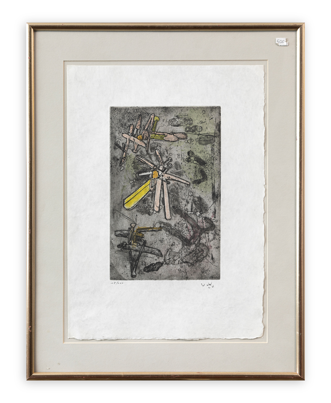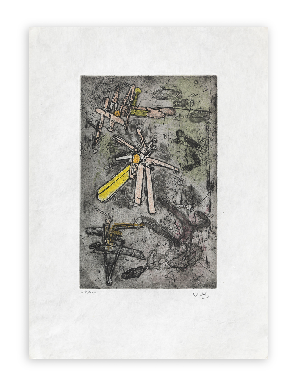 Opera originariamente facente parte della cartella Droites Librees con un poema di Henri Michaux e 14 acquaforti di Sebastian Matta