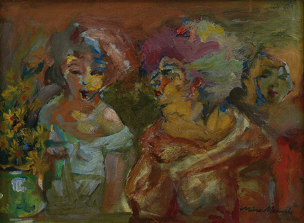 olio su tavola cm. 31,6x42,2; firma in basso a destra, firma, titolo, anno e frammenti di etichetta di Esposizione d'Arte Nazionale al retro, dichiarazione d'autenticità dell'artista, timbri ed etichetta della Galleria Renzo Spagnoli Arte (FI) su foto, opera registrata presso l'Archivio dell'opera di Mino Maccari, Catalogo Generale come da dichiarazione a cura della Galleria L'Angolo (Forte Dei Marmi) su foto.