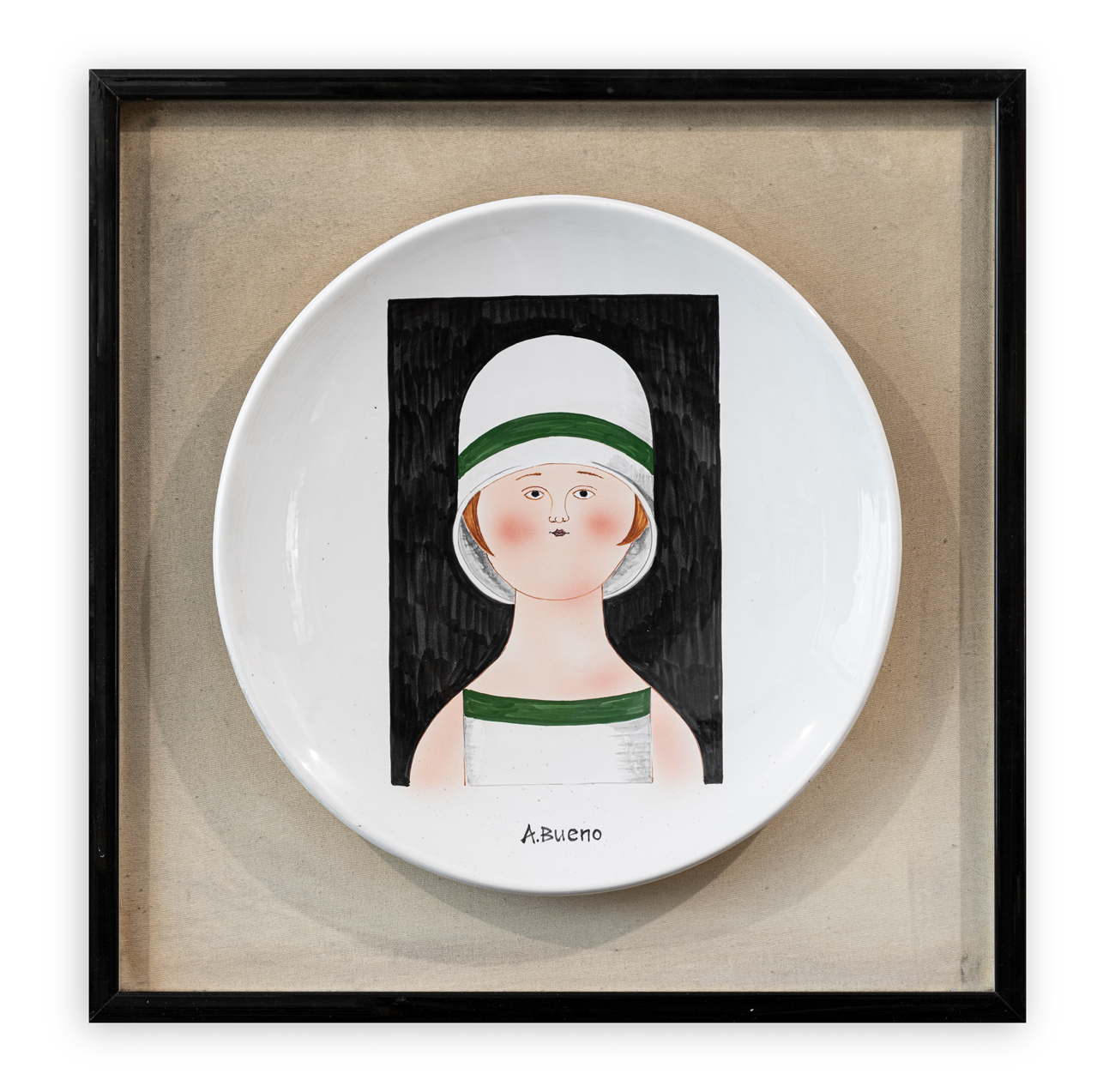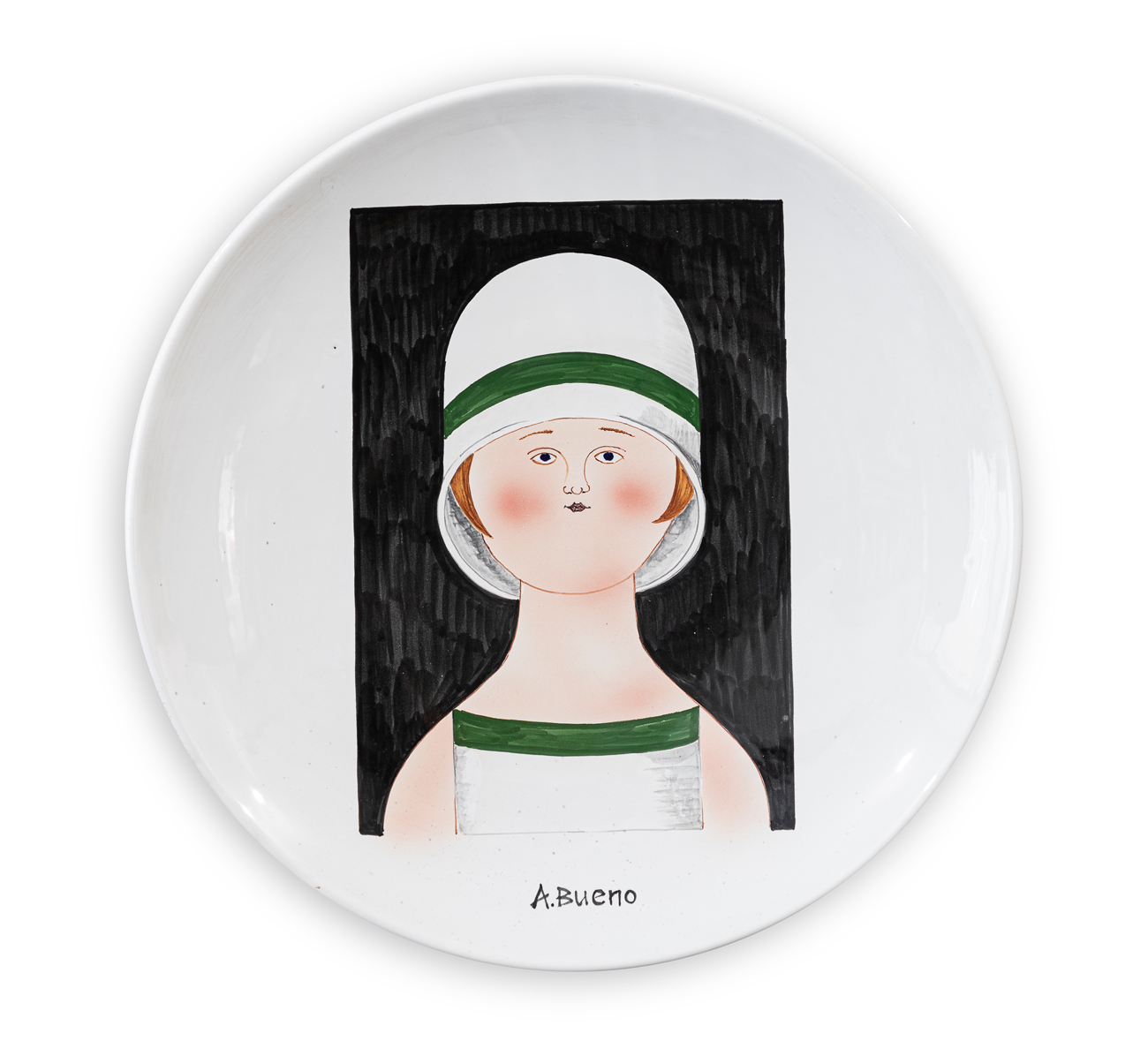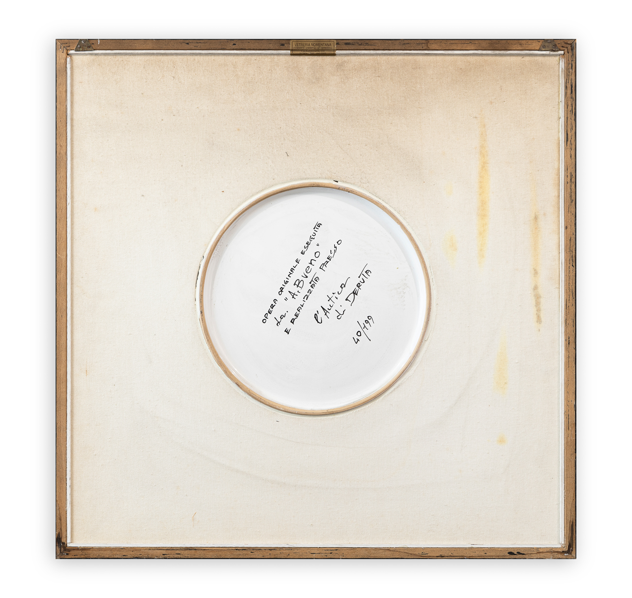 Iscrizione 'Opera originale eseguita da A. Bueno presso l'Antica Deruta' e numerazione (Esemplare 40/199) serigrafate al retro