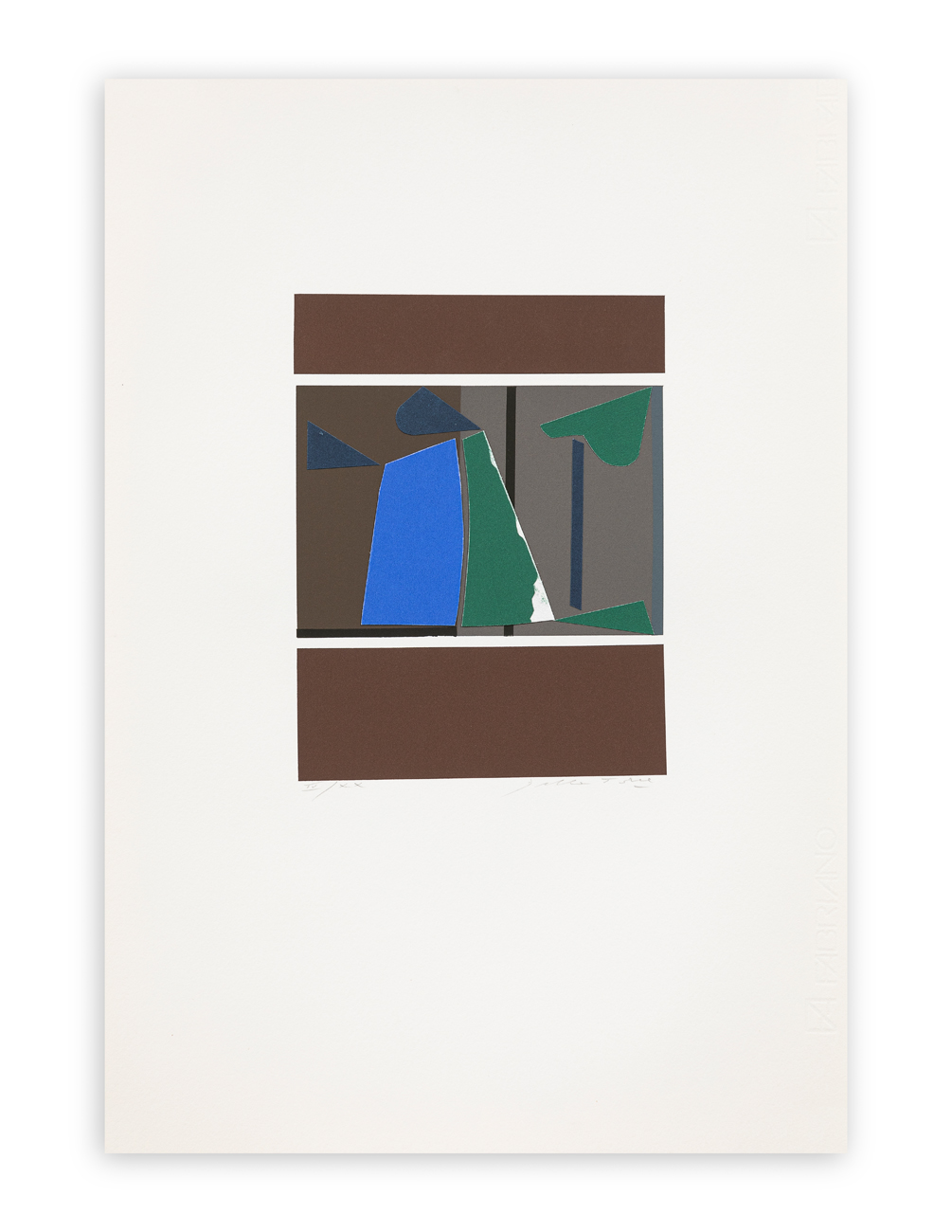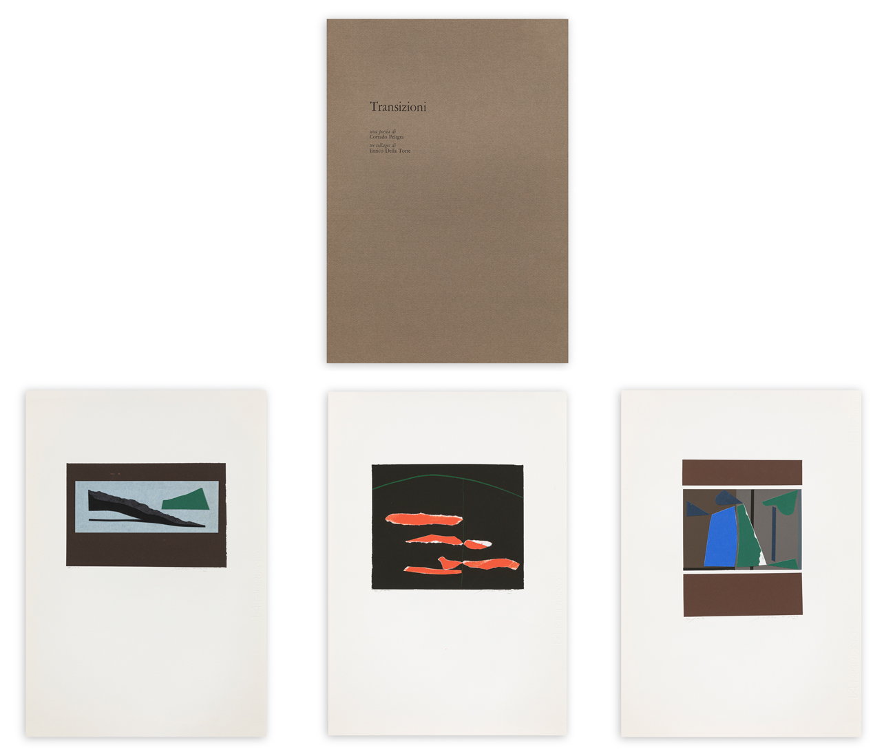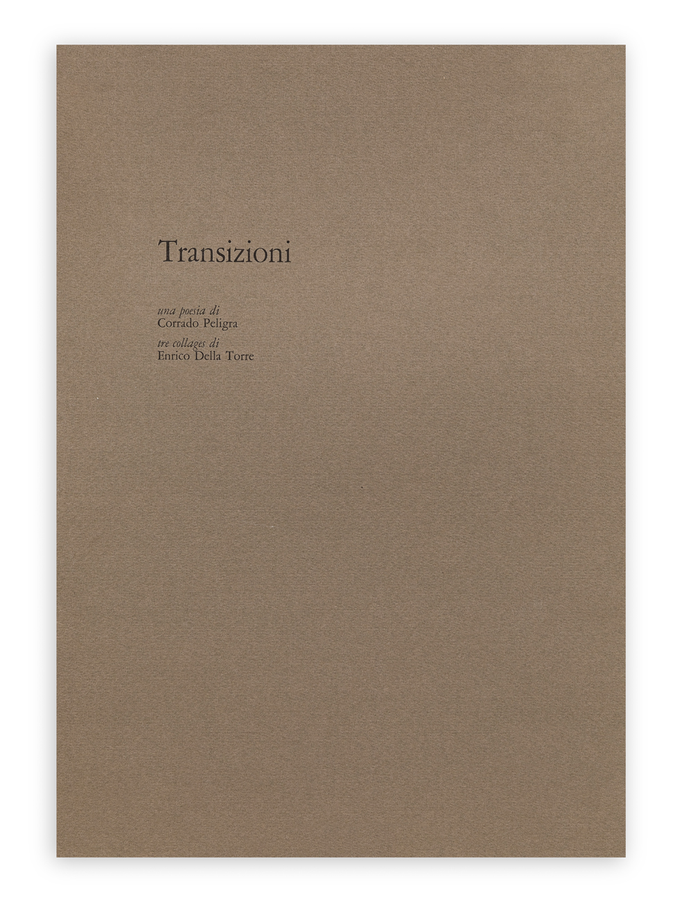 Cartella contenente una poesia di Corrado Peligra e 3 poetiche seri-collages di Enrico Della Torre, ciascuna recante firma e numerazione (Esemplari II/XX) a matita al fronte