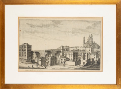 Vivace veduta del ponte della chiesa di Carignano tratti dal vivo. Vivace veduta del ponte della chiesa di Carignano tratti dal vivo.