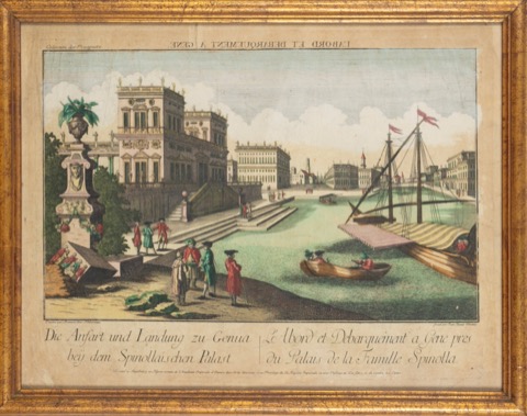 Due belle vedute acquarellate di Palazzo Spinola e del Porto di Genova, incise da Jean Benoit Winckler su disegmno di Habermann, facenti parte della Collection des Prospects edita ad Augsburg. Le incisioni erano destinate alla preparazione delle vedute ottiche.Due belle vedute acquarellate di Palazzo Spinola e del Porto di Genova, incise da Jean Benoit Winckler su disegmno di Habermann, facenti parte della Collection des Prospects edita ad Augsburg. Le incisioni erano destinate alla preparazione delle vedute ottiche.