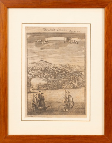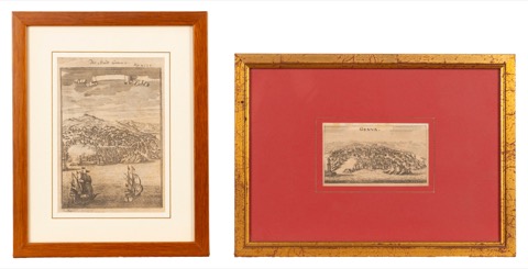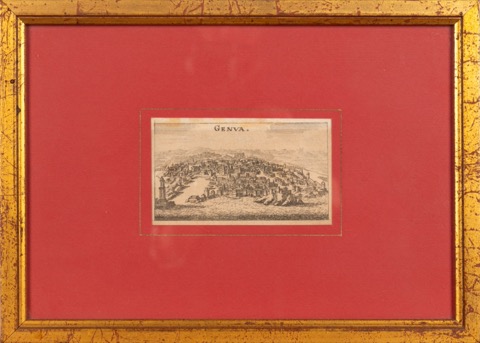 Piccole (11 x 16 e 10 x 7) ma molto elaborate stampe di Genova del XVIII secolo, per entrambe la città è vista dal mare. Piccole (11 x 16 e 10 x 7) ma molto elaborate stampe di Genova del XVIII secolo, per entrambe la città è vista dal mare.