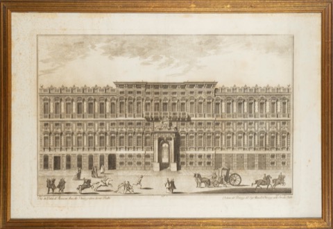 Ottima stampa antica con la facciata del principesco Palazzo Durazzo, oggi Palazzo Reale, il cui lungo titolo recita in italiano “Veduta del Palazzo di S.E. il Signor Conte Durazzo nella Strada Balbi in Genova” ed accanto in francese “Vüe du Palais de Monsieur le Conte Durazzo dans la rue Balbi a Genes”. Ottima stampa antica con la facciata del principesco Palazzo Durazzo, oggi Palazzo Reale, il cui lungo titolo recita in italiano “Veduta del Palazzo di S.E. il Signor Conte Durazzo nella Strada Balbi in Genova” ed accanto in francese “Vüe du Palais de Monsieur le Conte Durazzo dans la rue Balbi a Genes”.