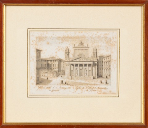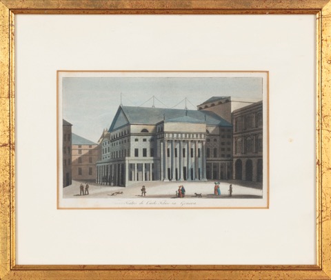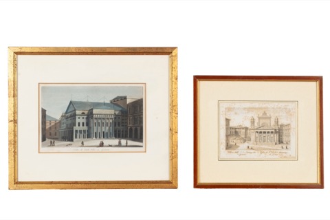 Bella veduta acquarellata del Carlo Felice; insieme nel lotto altre quattro vedute di palazzi e scorci genovesi. Bella veduta acquarellata del Carlo Felice; insieme nel lotto altre quattro vedute di palazzi e scorci genovesi.
