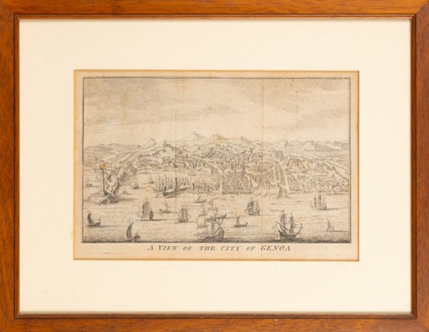Bella veduta della città di Genova a volo d'uccello presa dal mare. Bella veduta della città di Genova a volo d'uccello presa dal mare.