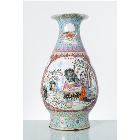 Vaso in porcellana decorata a motivo naturalistico con scene di vita.