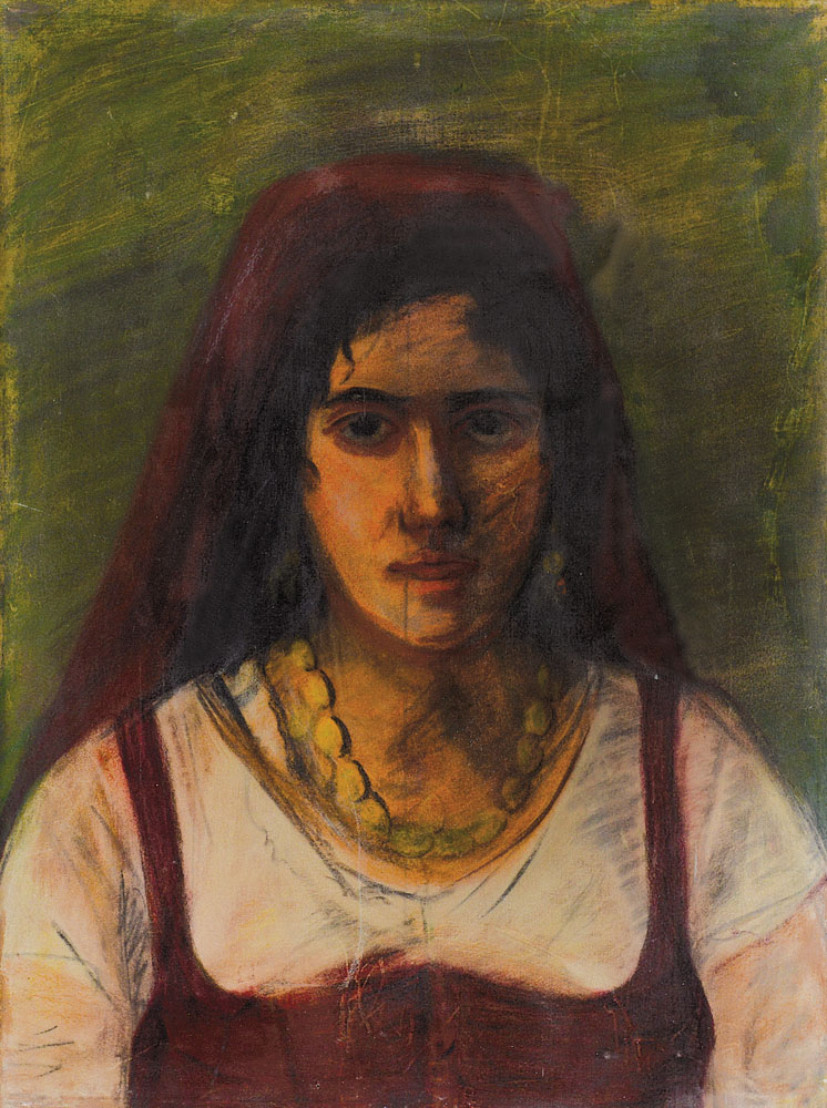 tecnica mista e pastelli su tela cm. 64,5x40,5; opera non firmata, dichiarazione d'autenticità della Dott.ssa Nicoletta Colombo su foto.
