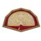 Tessuto a forma di ventaglio in stoffa ricamata a filo argentato entro teca non coeva.