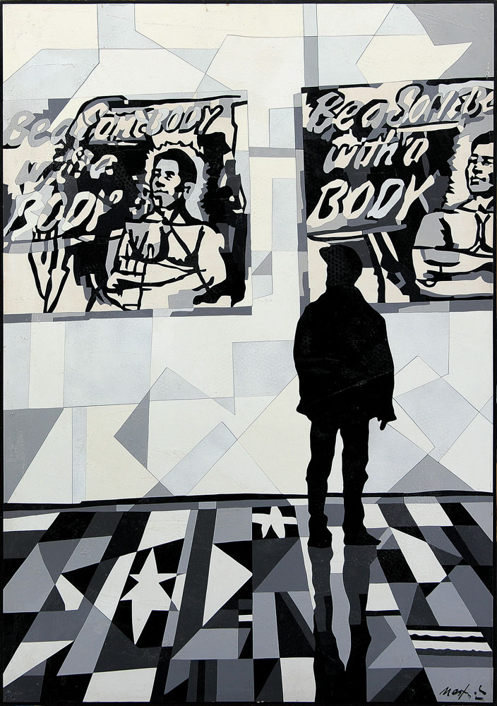 acrilici su tavola cm. 100x70, firma in basso a destra, firma, titolo e timbro a fuoco dell'artista al retro, dichiarazione d'autenticità dell'artista su foto, opera priva di cornice.