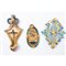 Tre acquasantiere in ceramica smaltata e decorata.