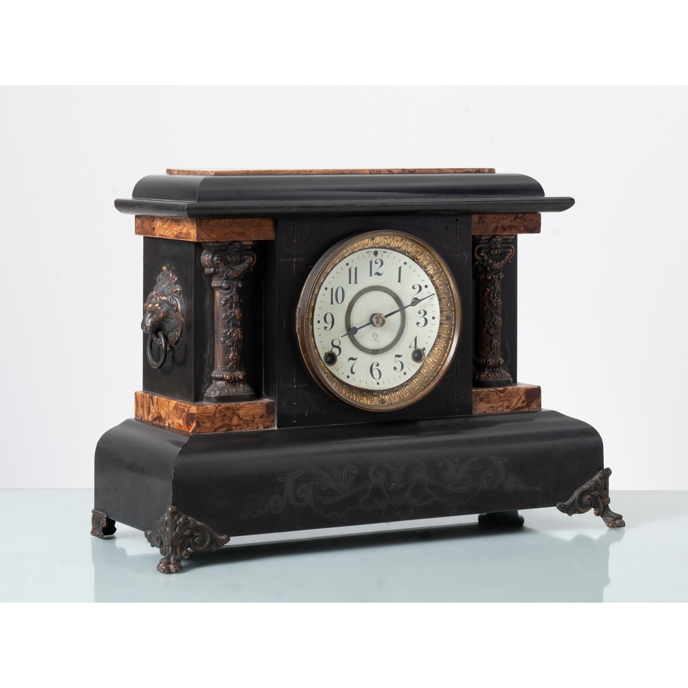 PENDOLA da tavolo in legno ebanizzato con bordure laccate a finto marmo.