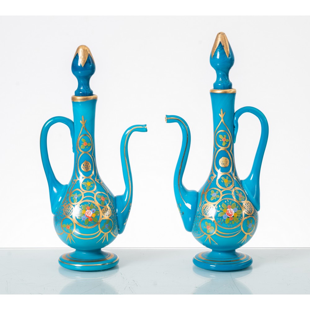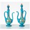 COPPIA DI PICCOLE BOTTIGLIE in opaline nei toni del turchese decorate in oro.