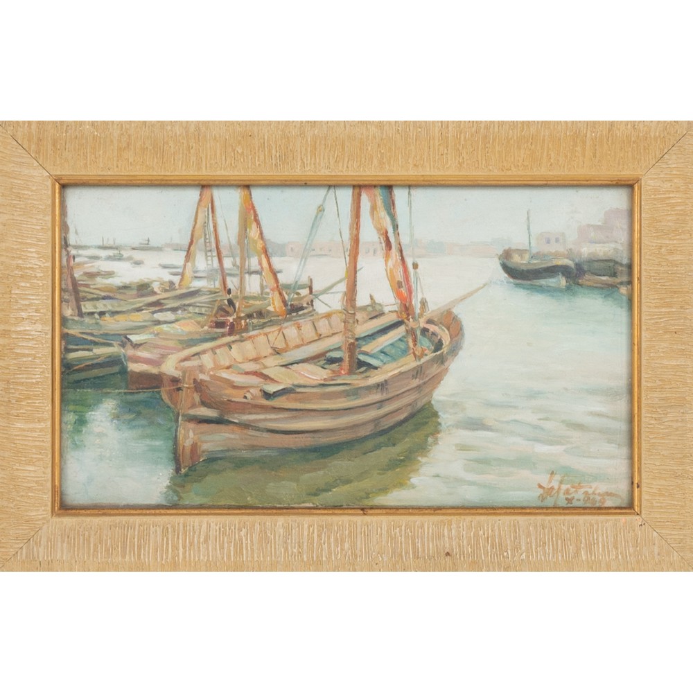 PITTORE DEL XX SECOLO, Porticciolo, Olio su tavoletta