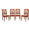 Quattro sedie stile Carlo X in legno di noce con tarsie in bosso, seduta e spalliera tappezzata con tessuto a motivo floreale.