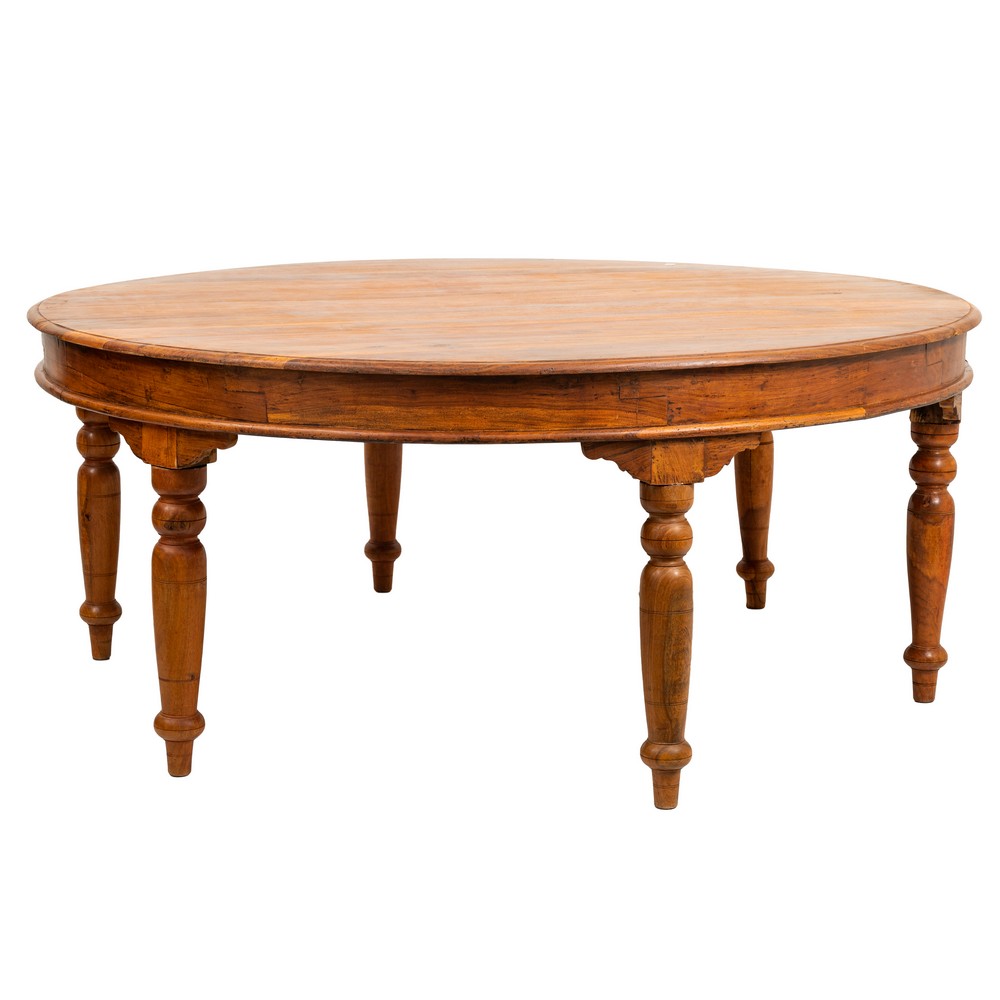 Grande tavolo di forma circolare in legno esotico.