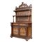 Piattaia di gusto neogotico in legno di noce con pannelli in cuoio dipinto.
