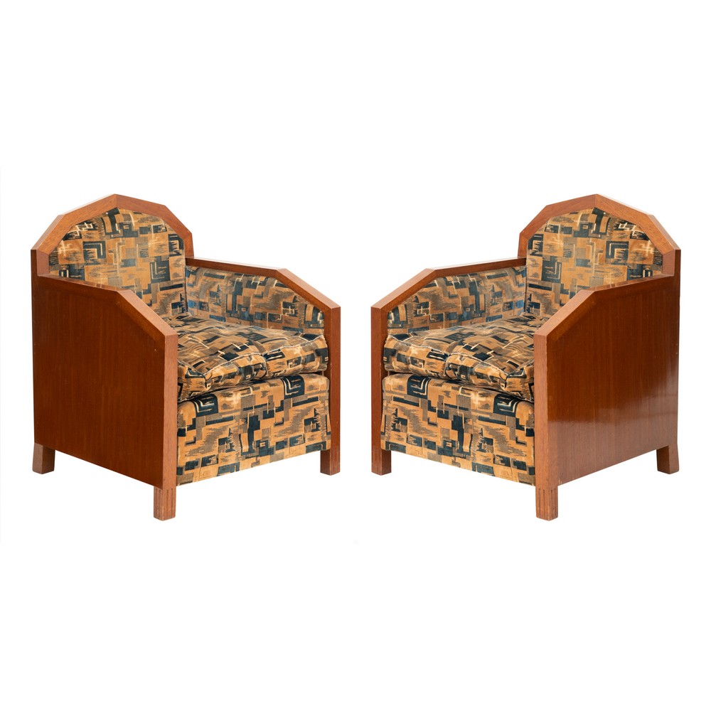 Coppia di poltrone in legno di mogano, periodo decò.