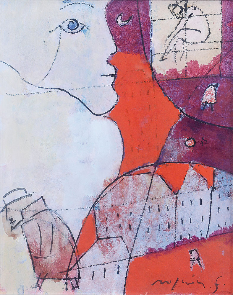tecnica mista su carta intelata cm. 41x33, firma in basso a destra, dichiarazione d'autenticità della moglie Mariuccia Rognoni Noè su foto.