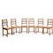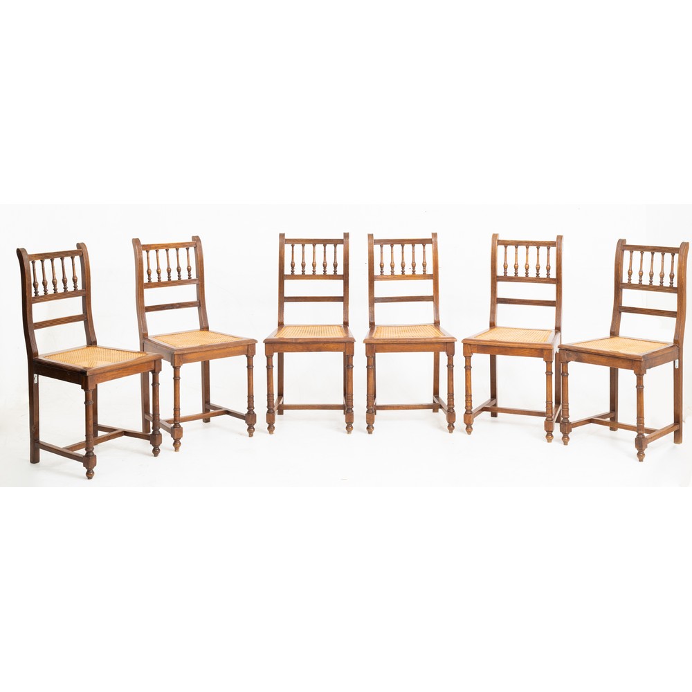 Sei sedie Enrico II in legno di rovere con seduta in finocchino.