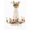Lampadario a ninfa a sei luci in ottone sbalzato e pendenti.