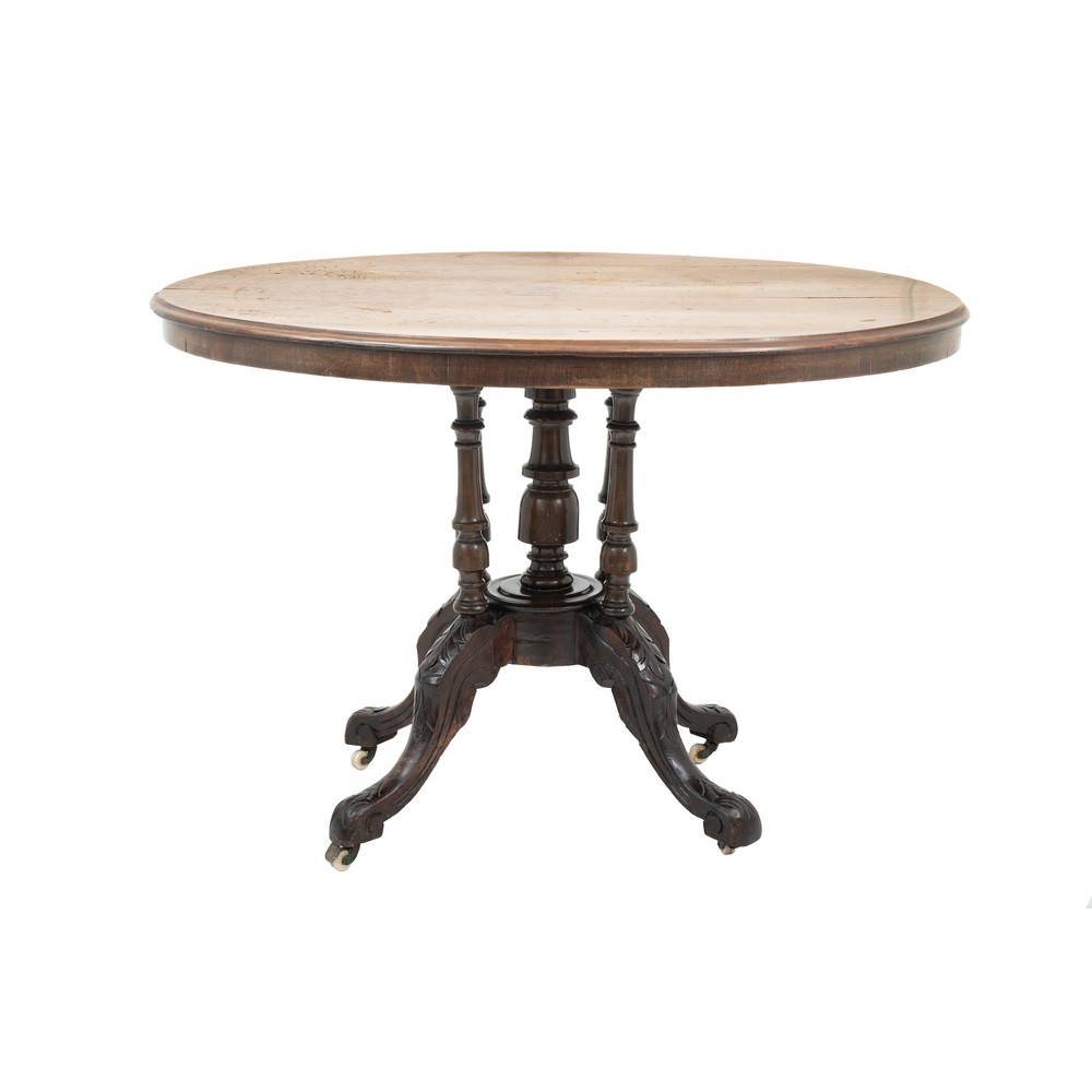 Tavolino ovale da centro in legno di noce, periodo Vittoriano.