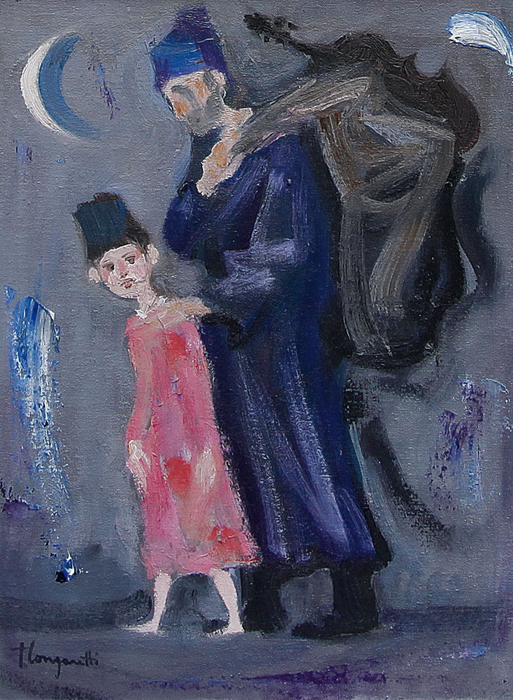 LONGARETTI TRENTO Treviglio (Bg) 27/09/1916Mendicante in viola e bambinoolio...