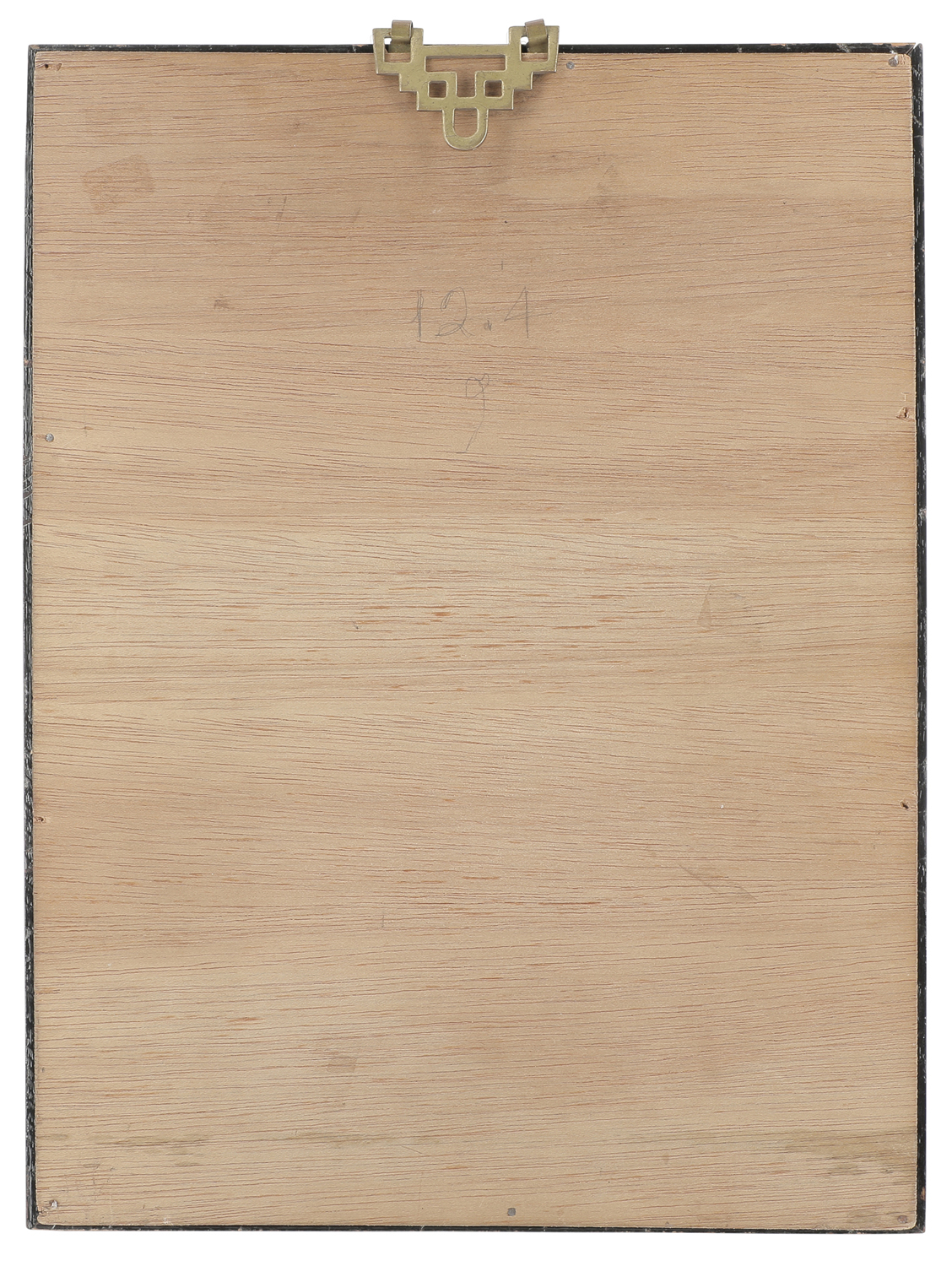 Cina Placca con donne che celebrano una anziana, in cornice di legno