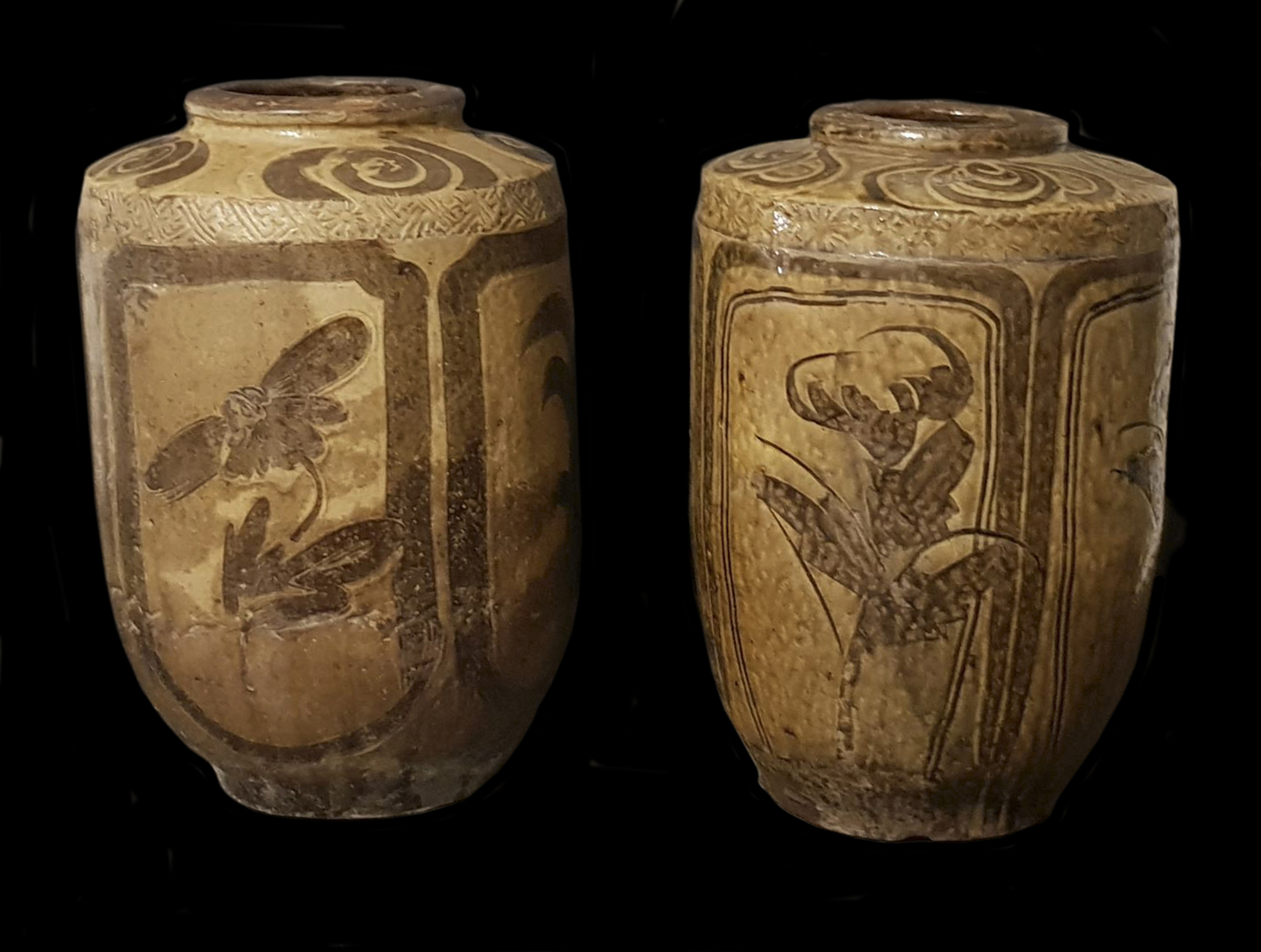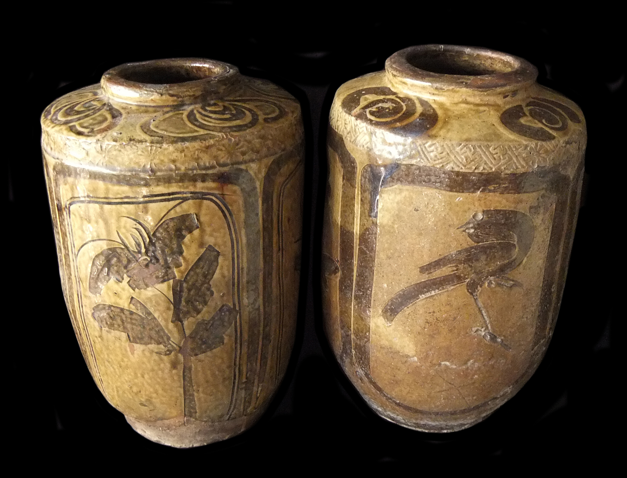 Cina Coppia di orci con decoro di fiori e animali entro riquadri