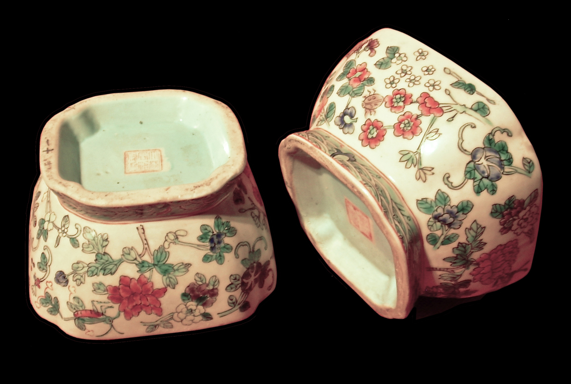 Cina. Dinastia Qing. Regno di Tongzhi (1862 - 1874) Coppia di ciotole con decoro floreale