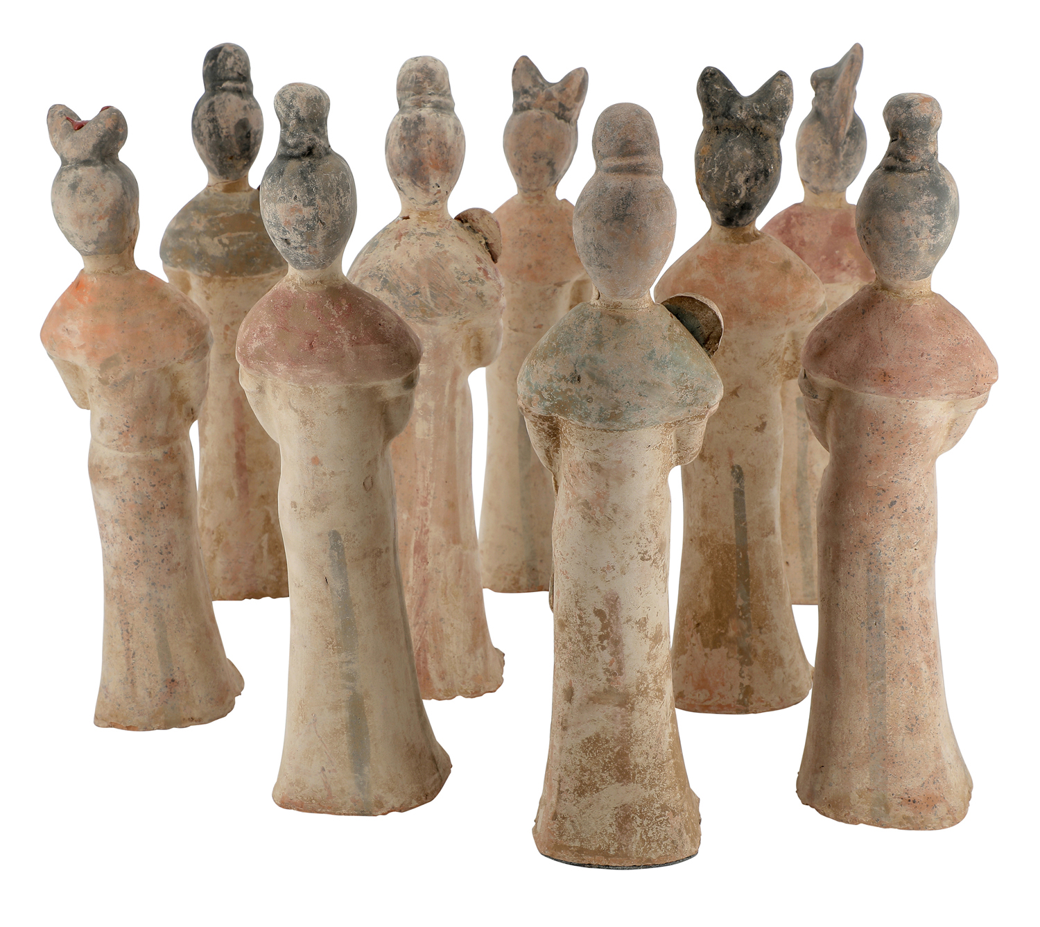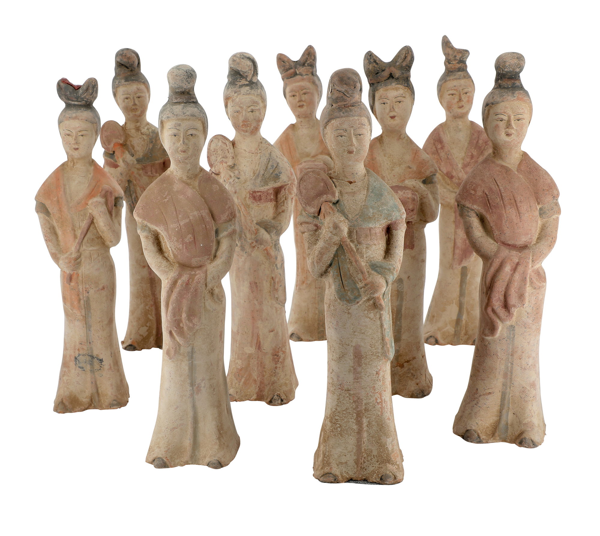 Corteo funebre di nove elementi in stile Tang. Per fattura il lotto sembra databile al XX secolo, ma non è stata effettuata alcuna datazione dei materiali attraverso strumentazione scientifica.