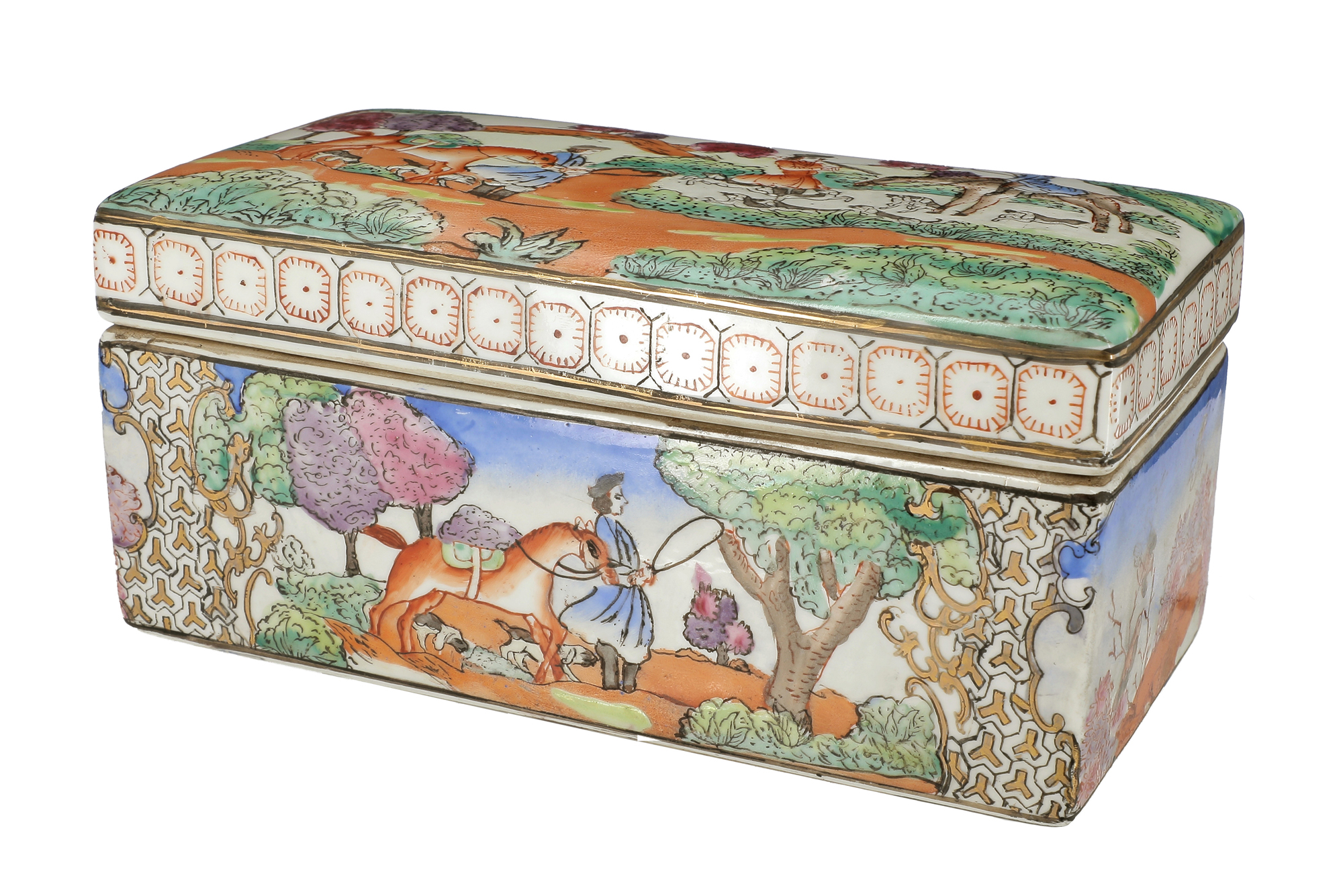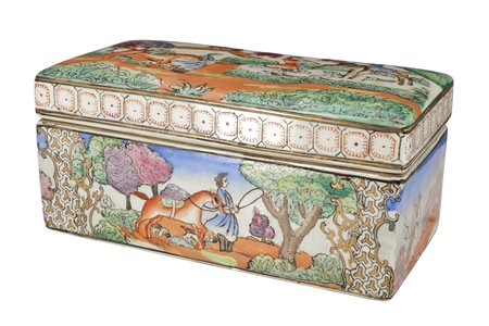 Cina. XX secolo Cofanetto con coperchio con scena di caccia