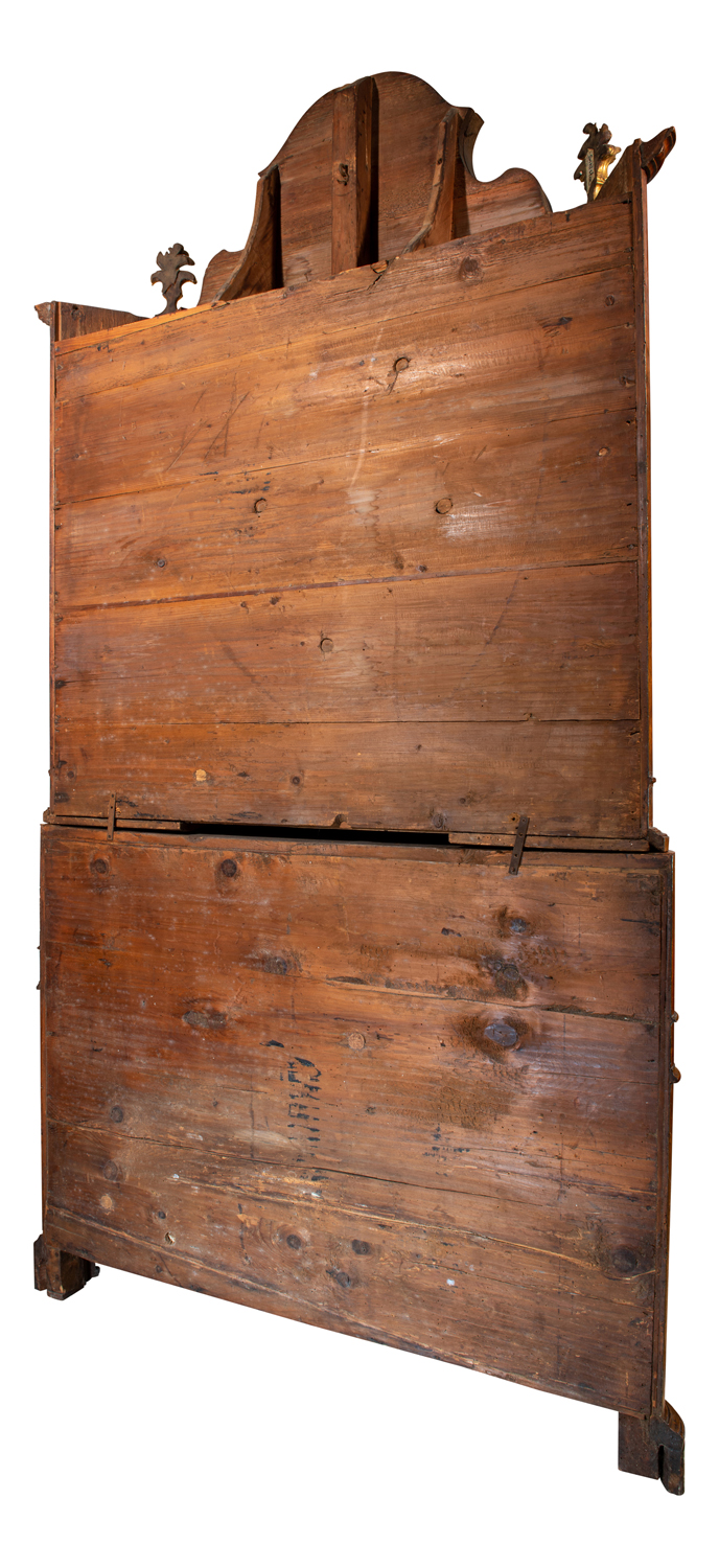 Stato di conservazione. Supporto: 80% (specchio inciso con ampie cadute; specchi delle ante non coevi; maniglieria sostituita; pigne non congrue e ridorate)
