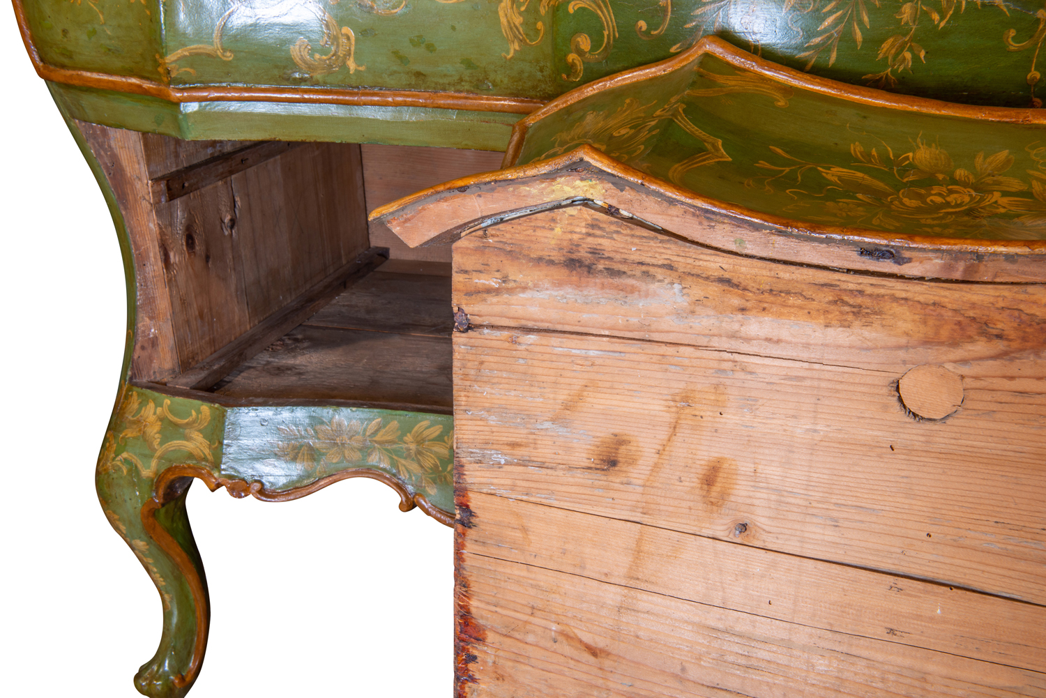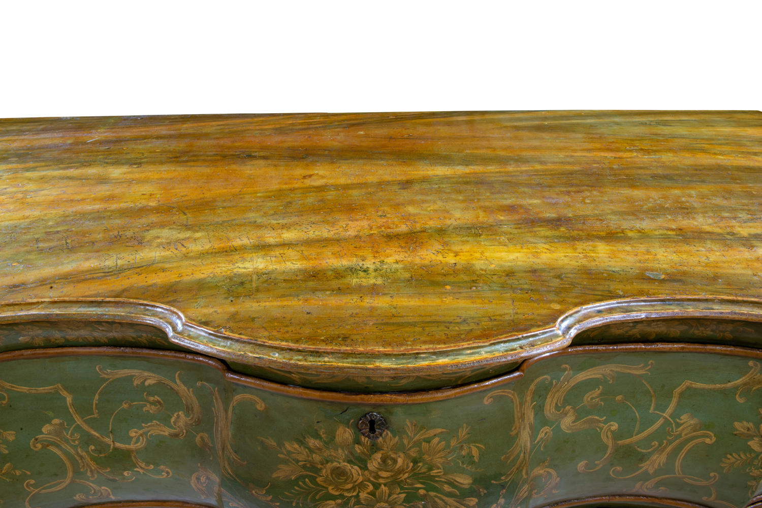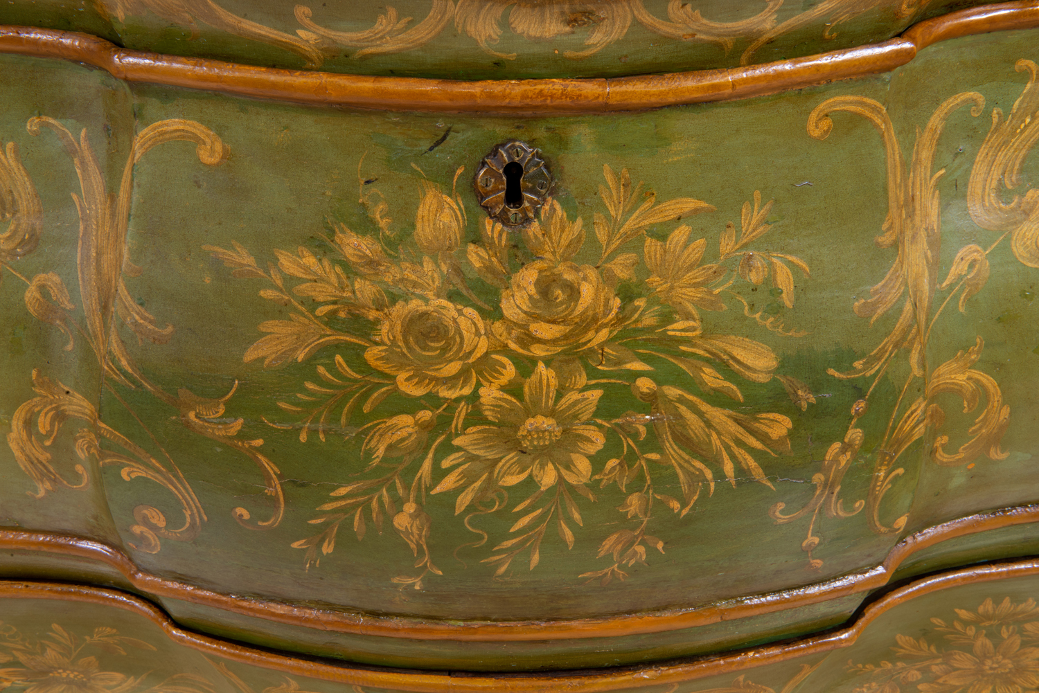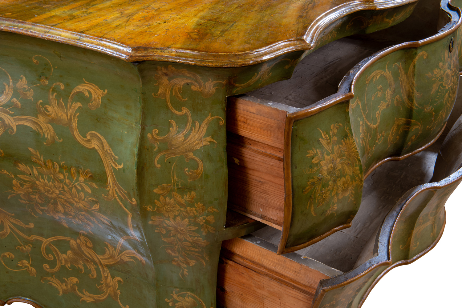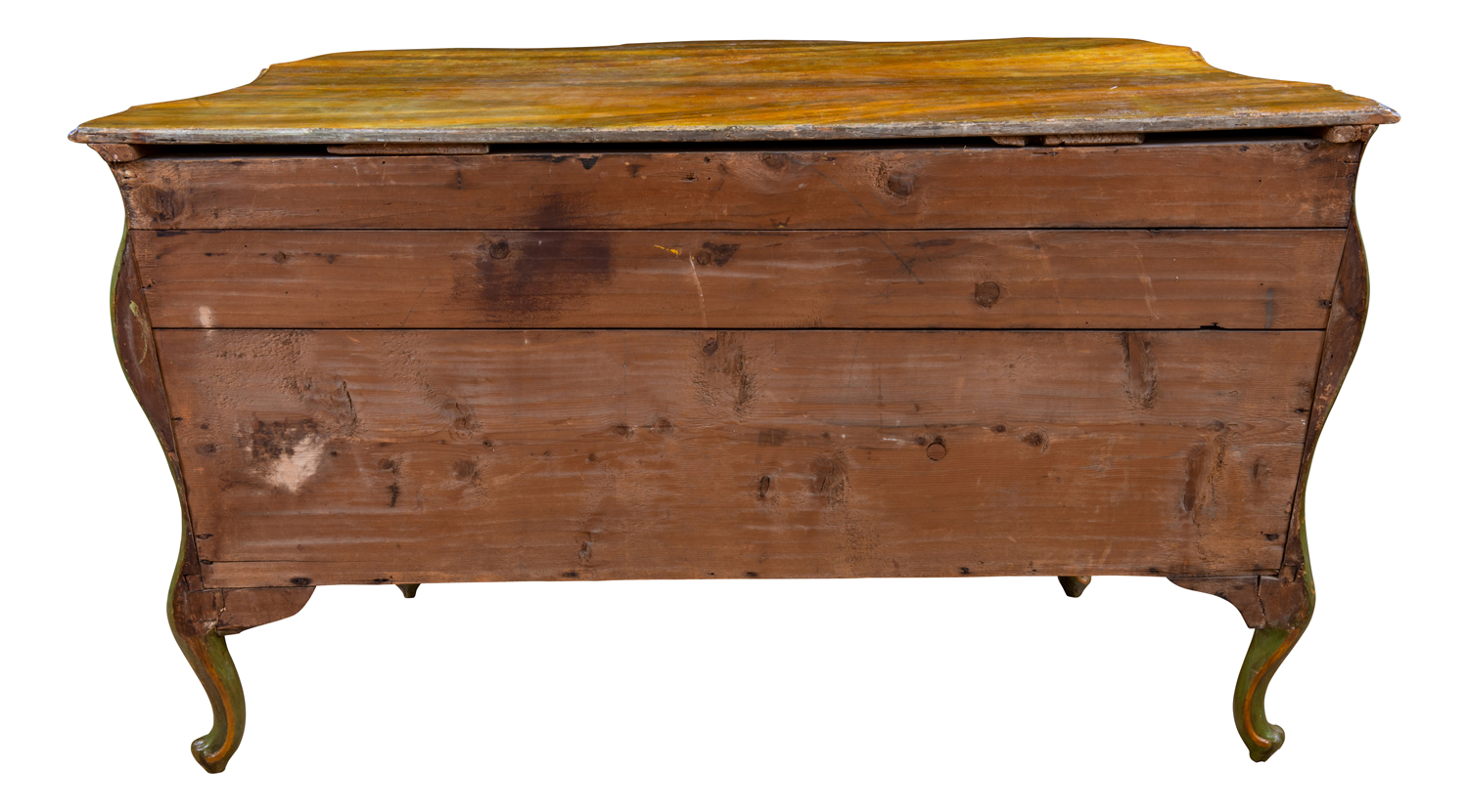 Veneto (Metà del XVIII secolo) Cassettone e specchiera, piano in finto marmo e tema floreale