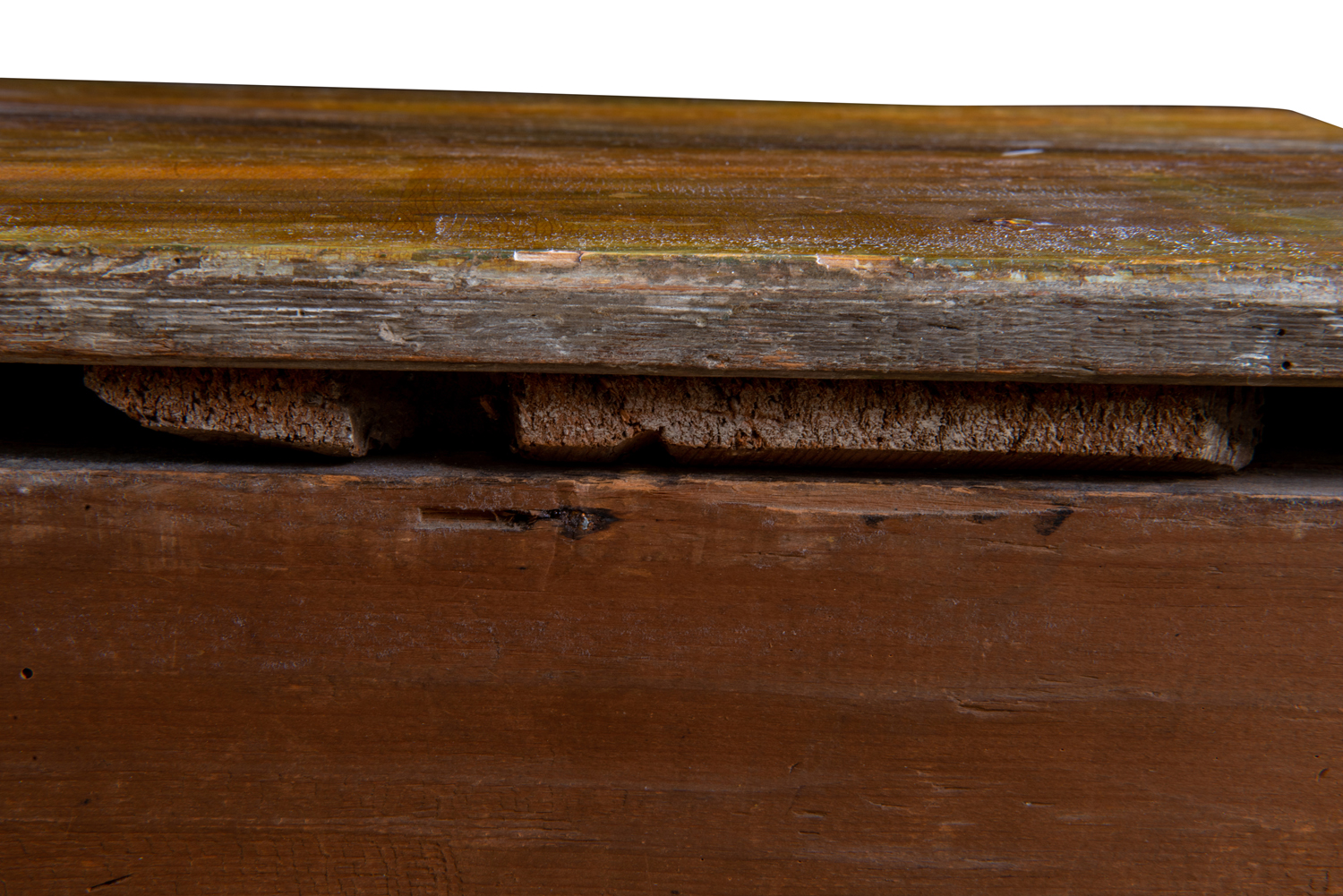 Stato di conservazione. Supporto: 70% (chiodature non coerenti sul lato sinistro; antica maniglieria assente; piano incongruo (?); specchio non coevo; schienale dello specchio in compensato)