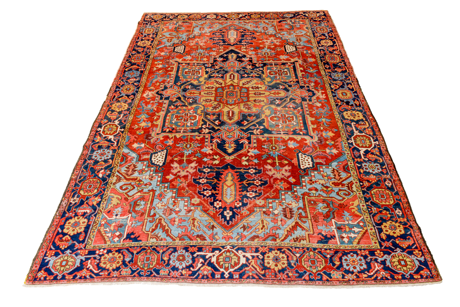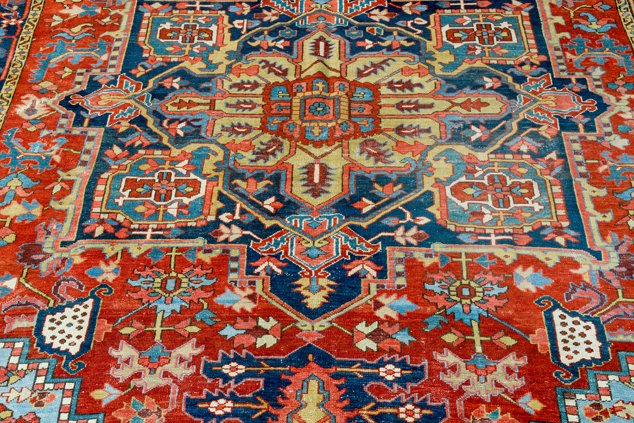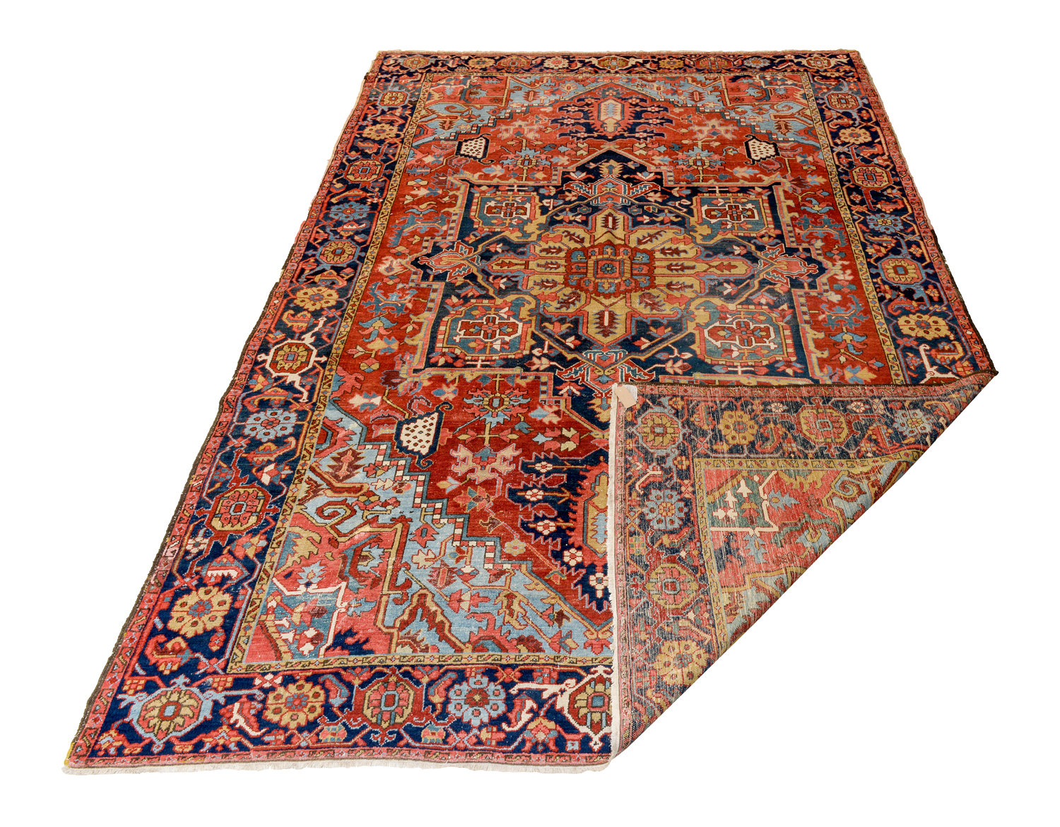 Esemplare a disegno Heriz con grande medaglione centrale ma con tipica struttura dei tappeti Karaja. Già ritenuto Serapi.