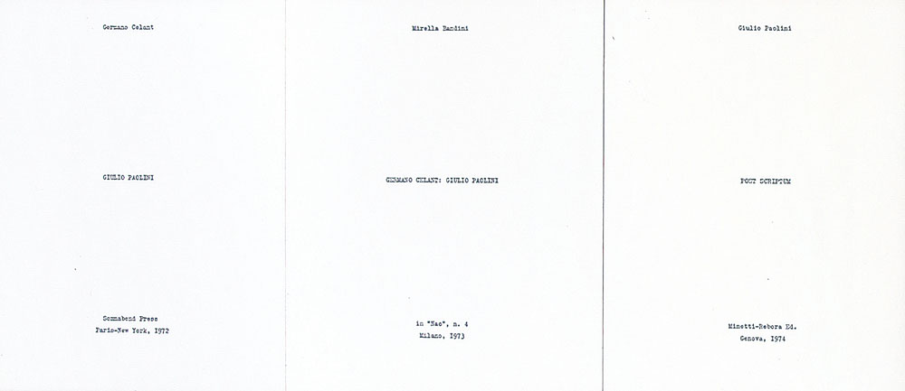 inchiostri su 3 carte cm. 28x66, scritta centrale Giulio Paolini sul foglio sinistro.