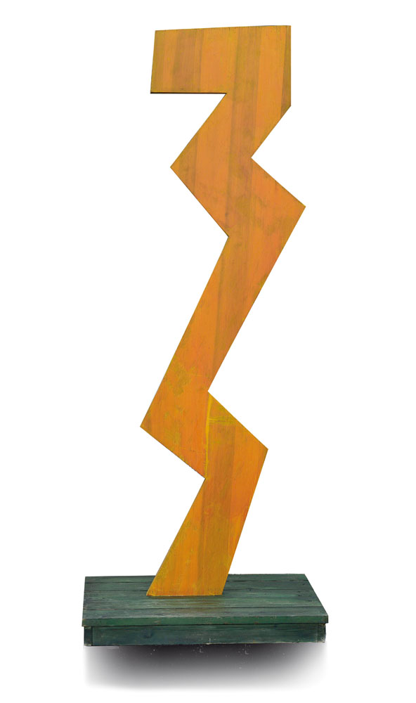 scultura in legno tulipier dipinto cm. 254x100x67, esemplare unico, firma in basso.