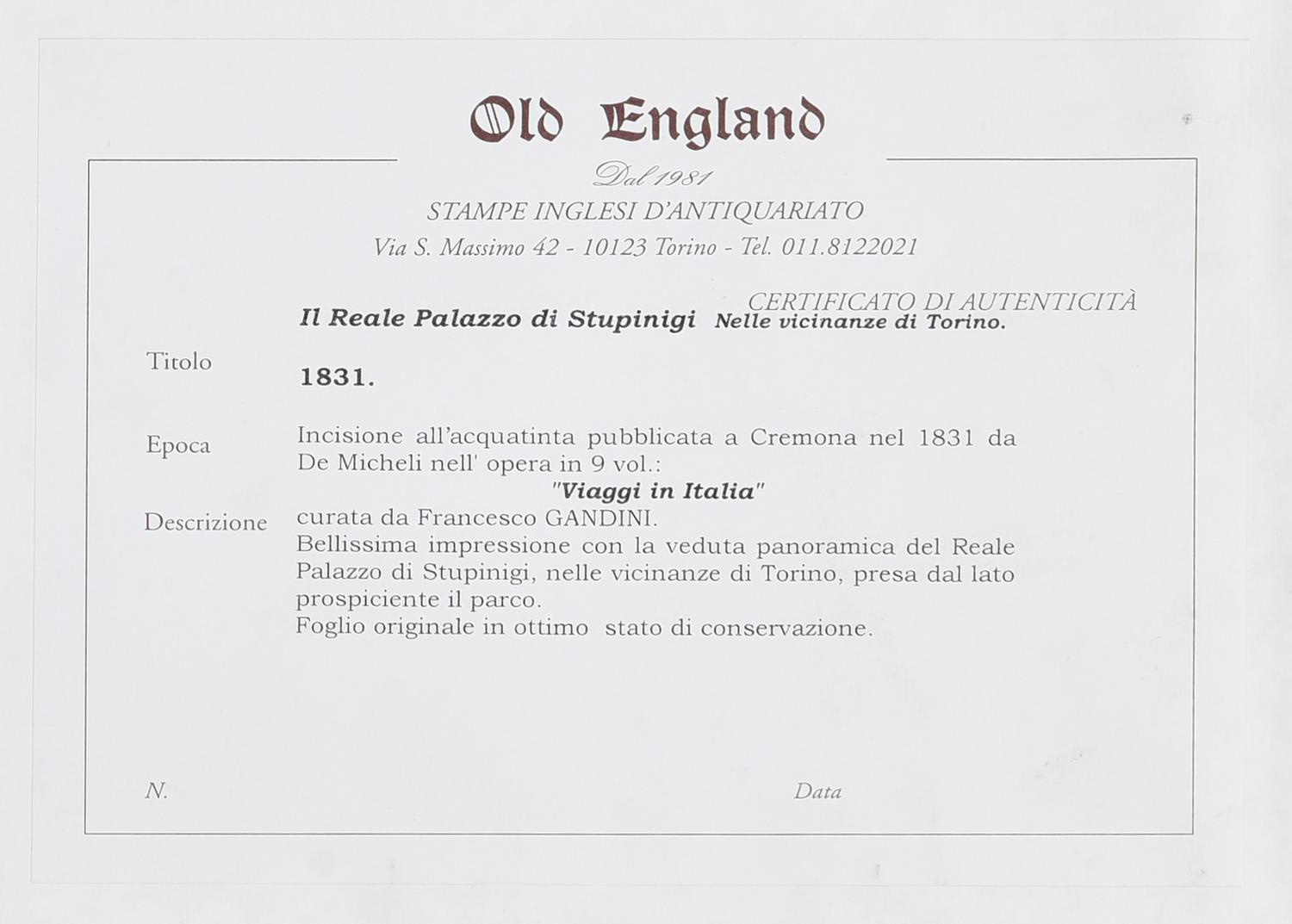 IL REALE PALAZZO DI STUPINIGI, 1831 incisione all'acquatinta, cm 33x43 (cn...
