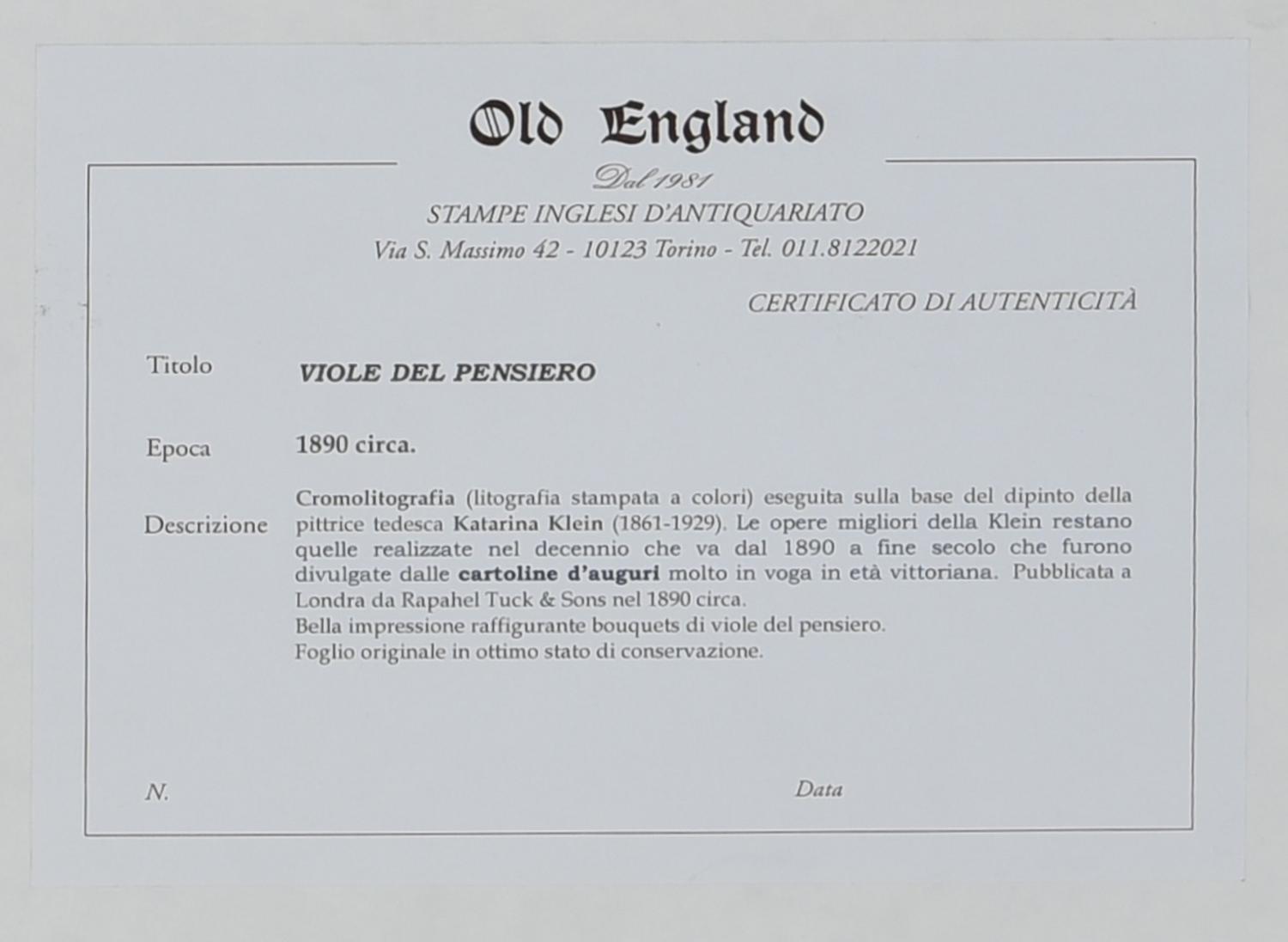 sul retro: certificato di autenticità Old England Gallery, Torino