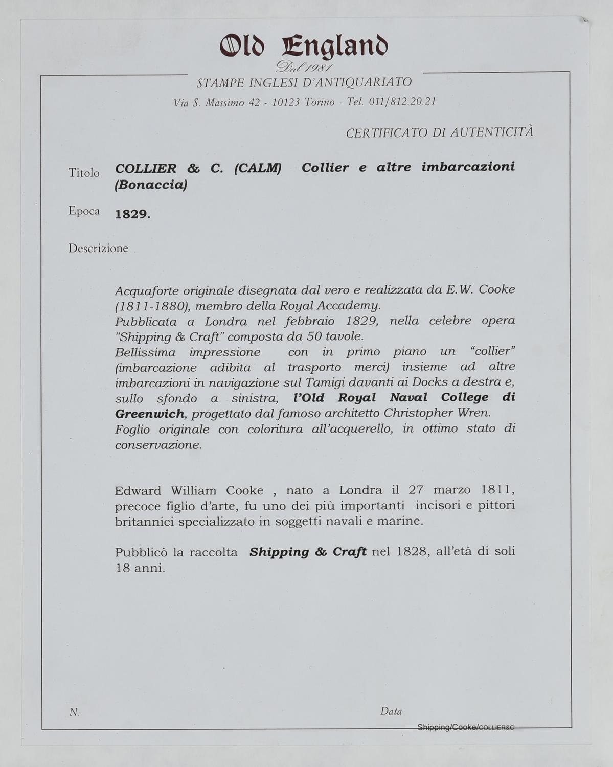 Opera realizzata da E.W. Cooke (1811-1880) e pubblicata a Londra nel Febbraio del 1829 all'interno dell'opera "Shipping & Craft".