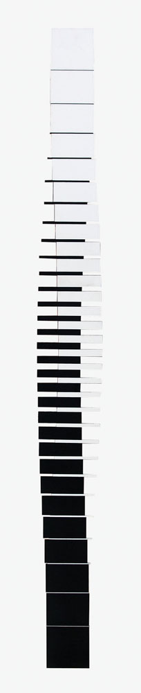 scultura da parete in plexiglass bianco/nero cm. 214x21,5x3, firma, anno e località (Paris) al retro in basso.