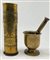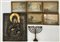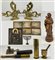 Cartone contenente numerosi oggetti di differente uso e materiale fra cui: due elementi decorativi in ottone a forma di cavallo marino, un mortaio in bronzo con pestello, un'icona raffigurante Madonna con Bambino con riza in metallo, una scultura in legno, un cannocchiale e cinque incizioni colorate raffiguranti vedute di Napoli (difetti)